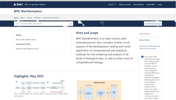 BMC出版集团是施普林格∙自然旗下机构,不断推出一系列高质量的同行评议期刊,包括BMC Biology、BMC Medicine等涵盖范围较广的期刊,以及Malaria Journal、Microbiome和BMC系列期刊等专门刊物。BMC以“科研永不止步”为信条,致力于不断创新,以更好地满足作者群体的需要,确保所发表论文的完整性,并积极推广开放研究。BMC Genomics影响因子为3.594,JCR 2区,中科院2区。BMC Bioinformatics影响因子为3.242,JCR 2区,中科院3区。其中BMC Bioinformatics是中国计算机学会C类推荐期刊。此次赵琪教授担任两刊编委是辽科大计算机学院在职教师在中国计算机学会推荐期刊任职的突破。