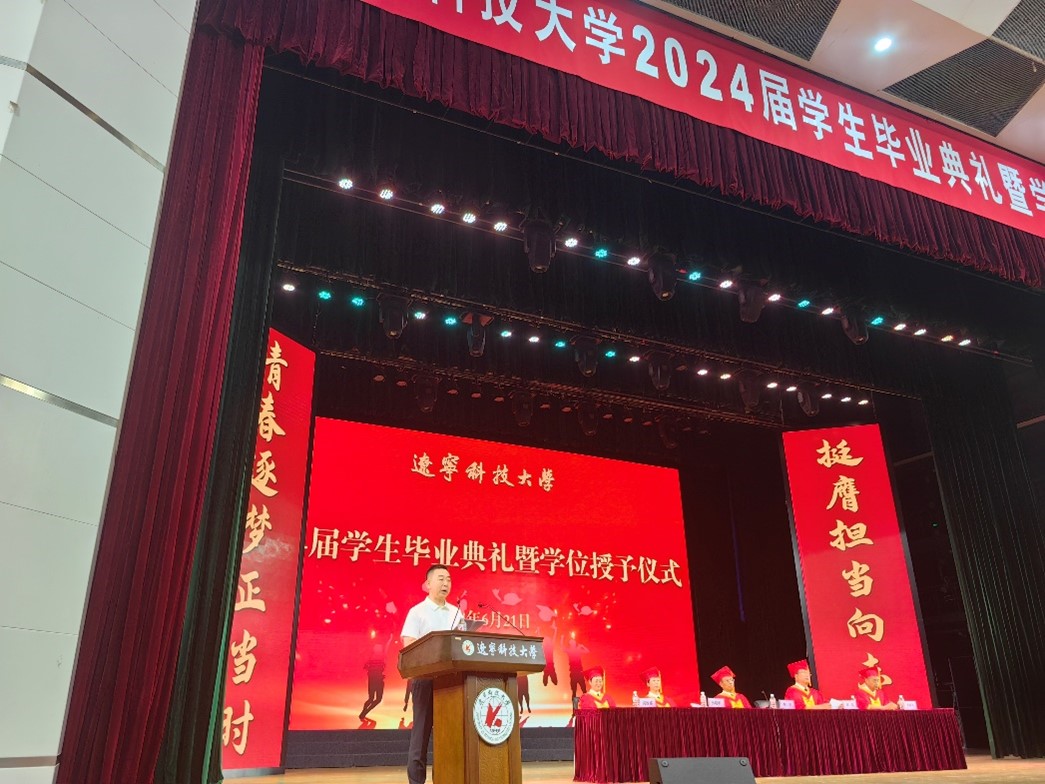 6月21日上午,我院冶金专业95届杰出校友、抚顺特钢董事长孙立国,作为优秀校友代表,出席了我校2024届本科生毕业典礼并作为优秀校友代表在典礼上发言。孙立国董事长于1995年毕业于原鞍山钢铁学院钢铁冶金专业,现任沙钢抚顺特钢董事长总经理。