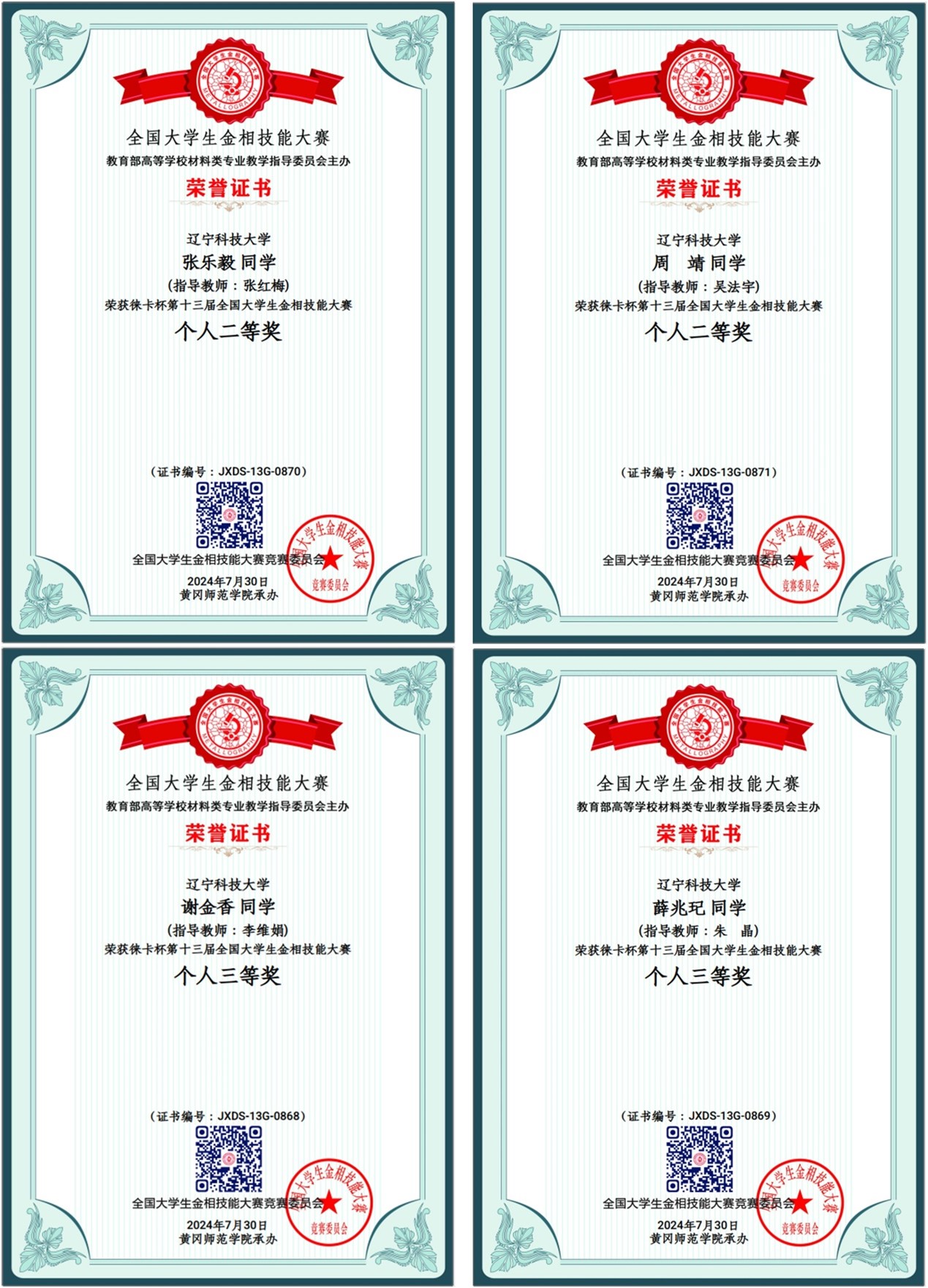 7月25日至30日,由教育部高等学校材料类专业教学指导委员会主办、黄冈师范学院承办的第十三届全国大学生金相技能大赛决赛在湖北黄冈举行。本次大赛分校内预赛、分区赛复赛和全国总决赛三个阶段。来自清华大学、上海交通大学、北京科技大学等531所大学的1898名选手同台竞技。经过多天激烈的角逐,辽科大材冶学院学子凭借严谨的实验素养和沉着的竞技状态,最终荣获二等奖2项,三等奖2项。