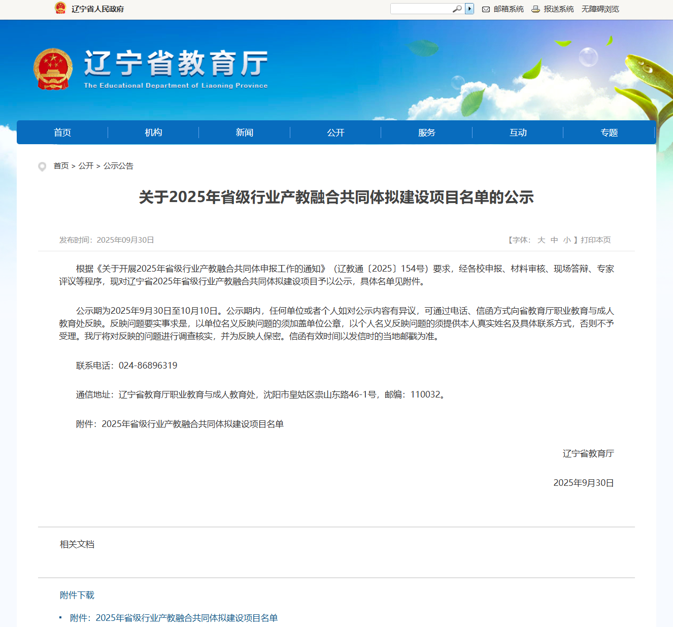 近日,辽宁省教育厅公示了2025年省级行业产教融合共同体拟建设项目名单。根据《关于开展2025年省级行业产教融合共同体申报工作的通知》(辽教通〔2025〕154号)要求,经院校自主申报、材料审核、现场答辩与专家评议等多轮程序,由乐动在线-乐动(中国)、鞍钢重型机械有限责任公司、鞍山职业技术学院共同牵头申报的“钢铁行业产教融合共同体”成功入选辽宁省2025年省级拟建项目。