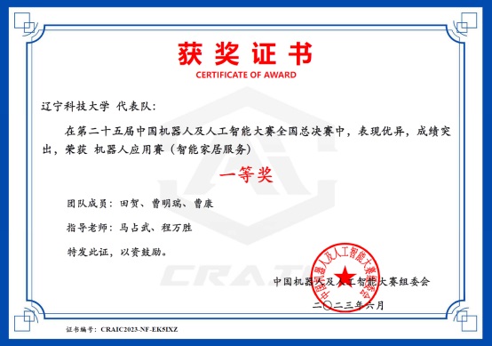 2023年第25届中国机器人及人工智能大赛总决赛于613-16日在海南举行。我校智能制造工程技术研究中心组建了由控制科学与工程专业学生田贺、曹明瑞和曹康组成的参赛队伍,在指导老师程万胜教授、马占武讲师的指导下,历经校赛、省赛,最终在全国总决赛中获得机器人应用智能家居服务赛一等奖。