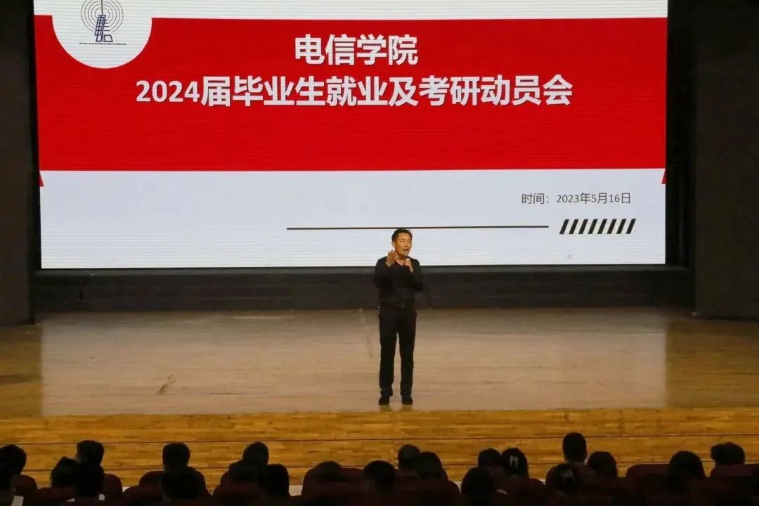 为扎实推进2024届毕业生考研与就业工作,帮助毕业生认清就业形势,516日下午,电信学院在校礼堂召开2024届毕业生就业与考研动员会,学院党委书记王会立主持,2024届全体毕业生参加会议