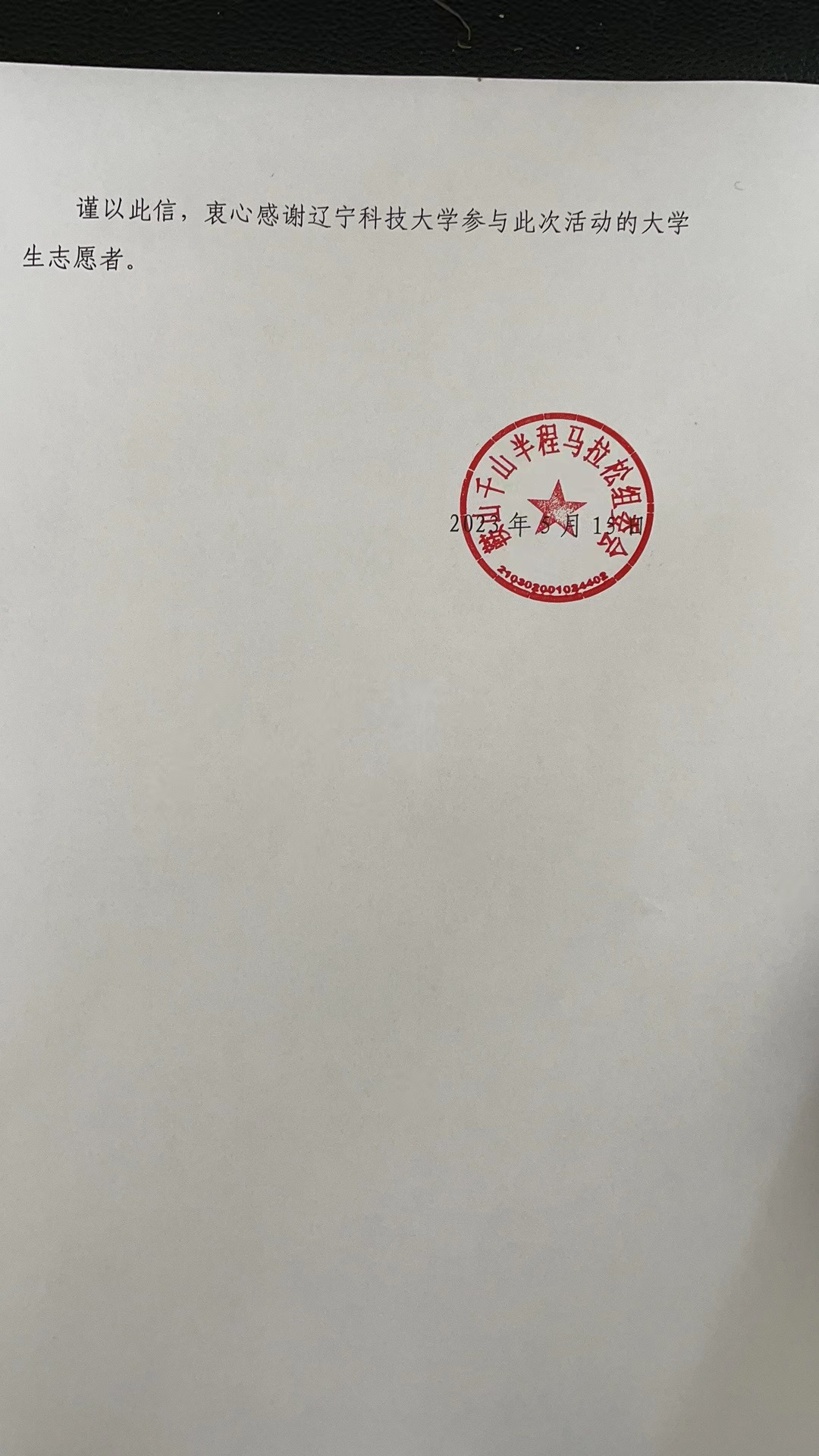 收到感谢信后,辽科大志愿者们倍受鼓舞。青年志愿者刘城旭说:“能够为‘鞍马’贡献属于自己的一份力量,我感到十分光荣,未来,我将继续发扬‘奉献、友爱、互助、进步’的志愿服务精神,服务社会、历练成长,让青春在党和人民最需要的地方绽放绚丽之花!”