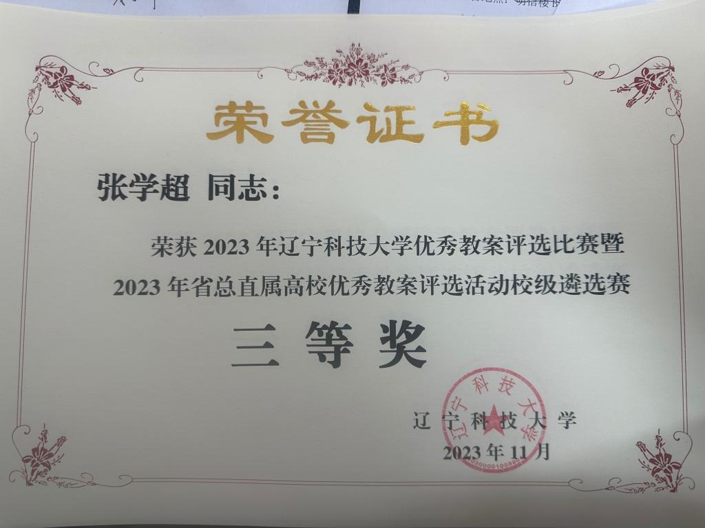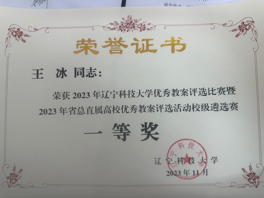 荣获2023年乐动在线-乐动(中国)优秀教案评选比赛暨2023年总共直属高校优秀教案评选活动校级遴选赛