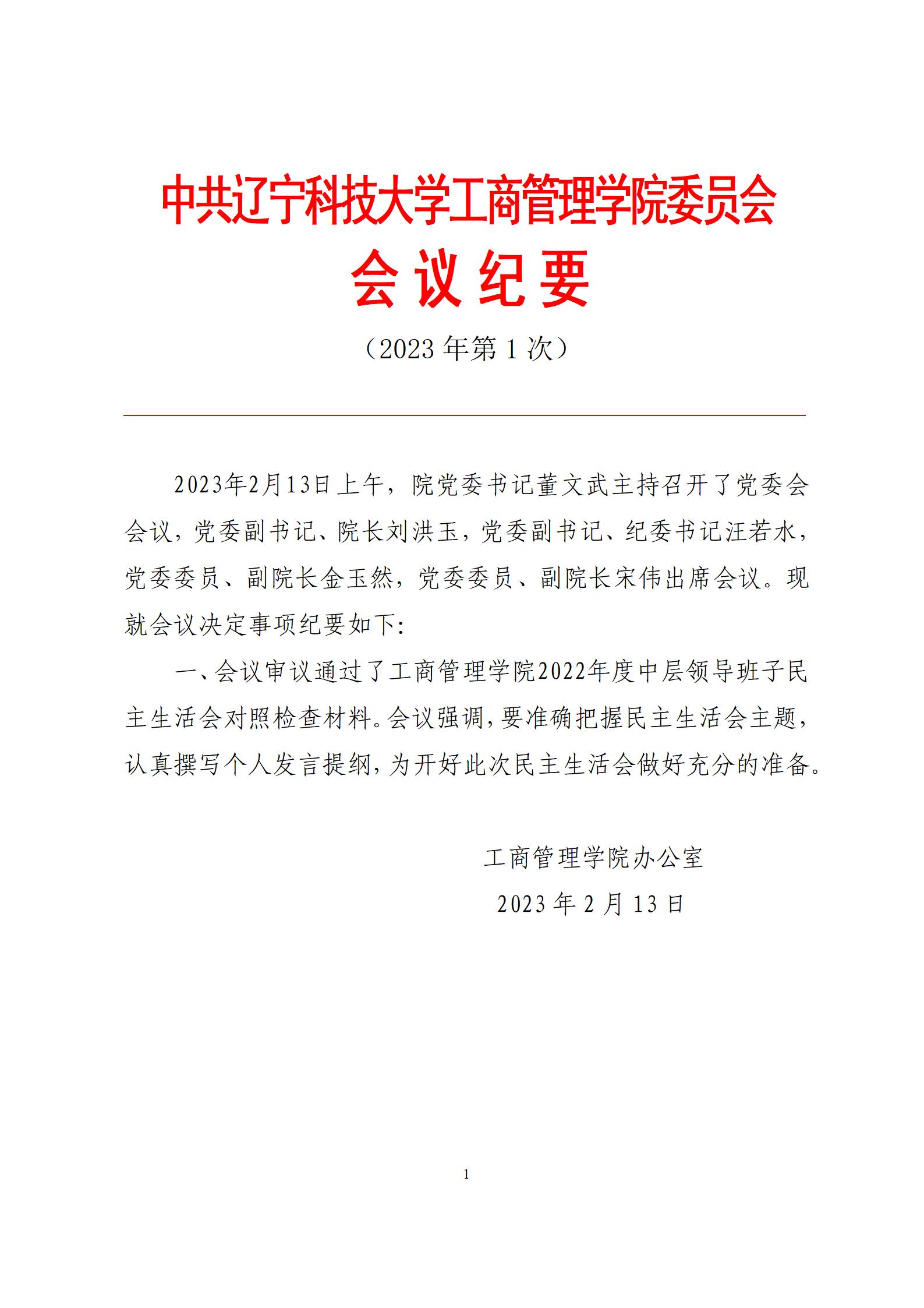 中共乐动在线-乐动(中国)工商管理学院委员会会议纪要(2023年第1次)