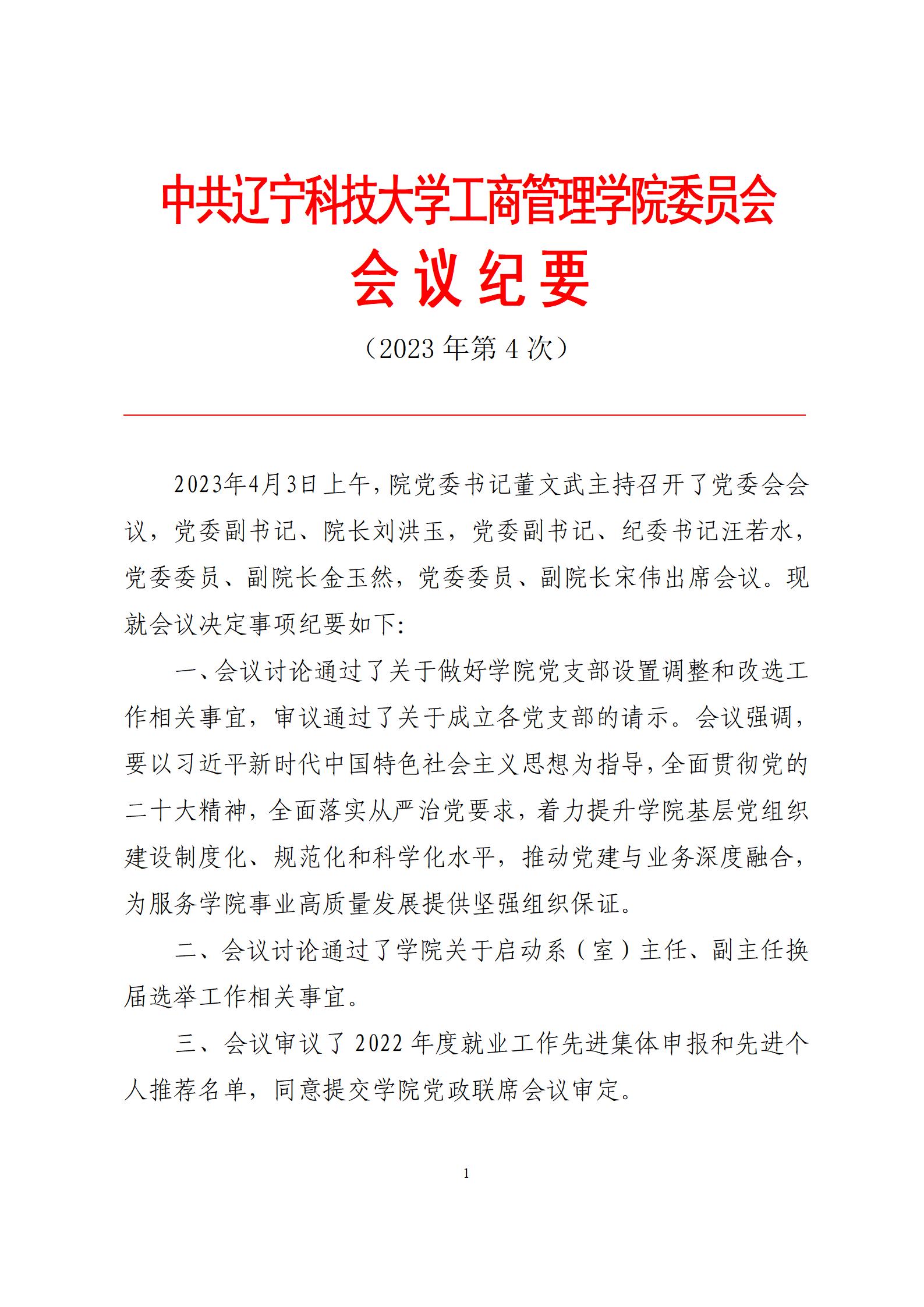 中共乐动在线-乐动(中国)工商管理学院委员会会议纪要(2023年第4次)