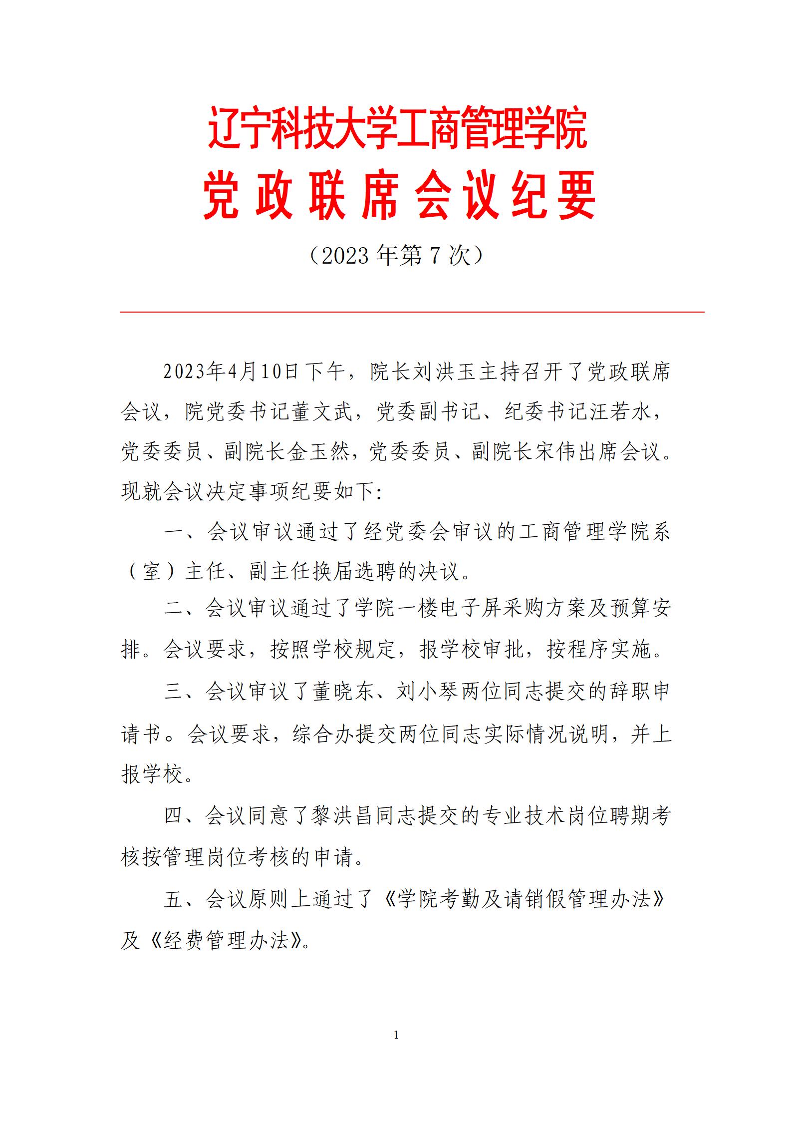 乐动在线-乐动(中国)工商管理学院党政联席会议纪要(2023年第7次)