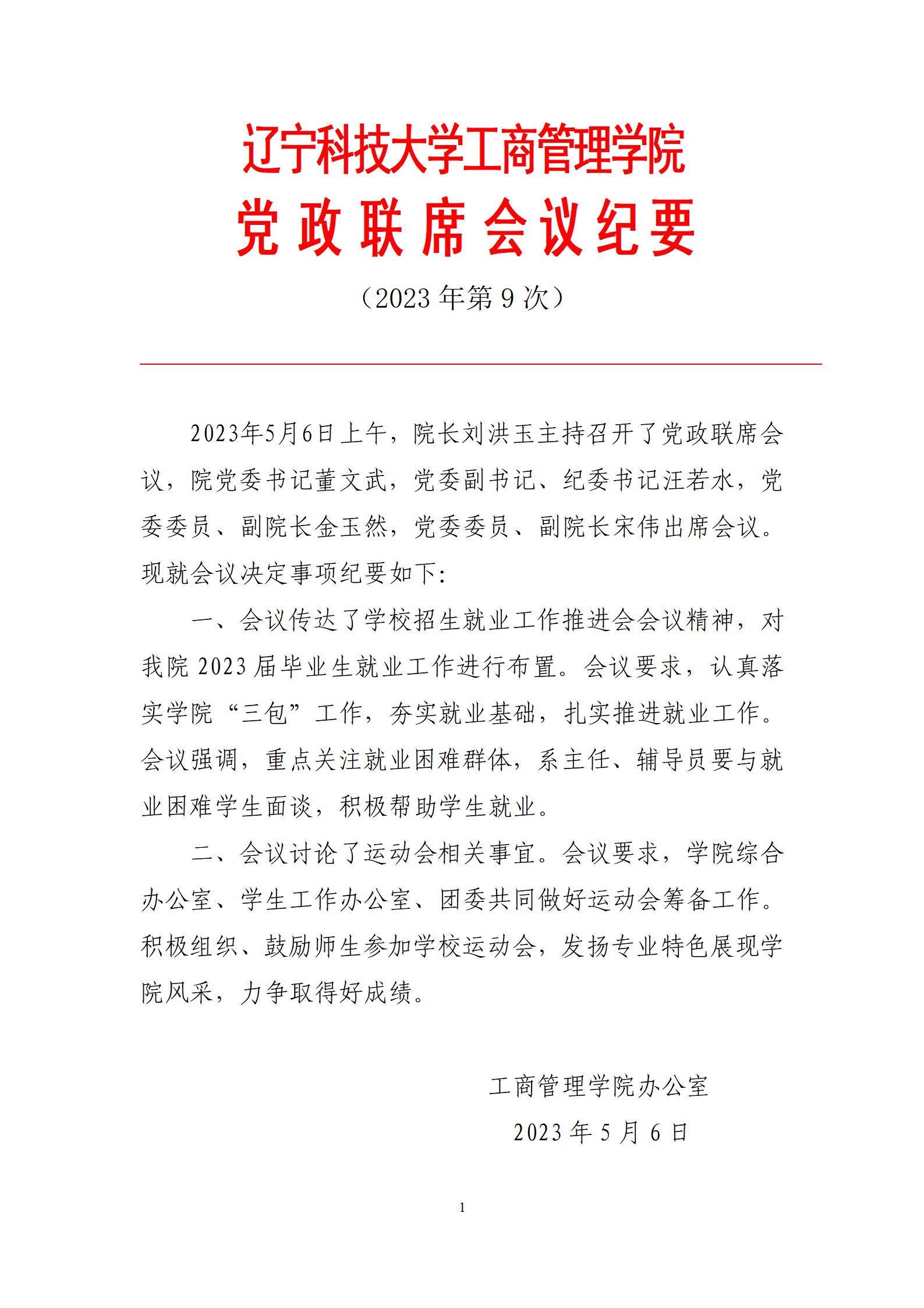 乐动在线-乐动(中国)工商管理学院党政联席会议纪要(2023年第9次)