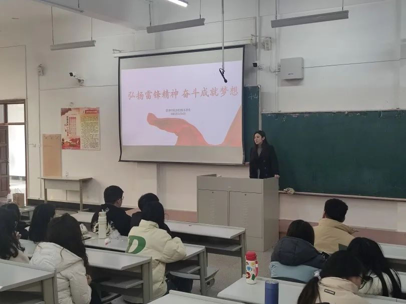 在 “弘扬雷锋精神 奋斗成就梦想” 主题班会中,辅导员带领同学们围绕如何弘扬雷锋精神展开热烈讨论。通过深入学习,同学们深刻领会了雷锋精神内涵,增强了学习和践行雷锋精神以及社会主义核心价值观的自觉性。同学们纷纷表示,要以雷锋为榜样,将雷锋精神融入日常学习和生活,为民族复兴贡献青春力量。