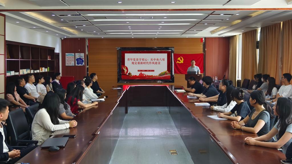 随后,田树学以《青年党员守初心:从中央八项规定看新时代作风建设》为题讲授专题党课。他结合中央八项规定精神实质,深入剖析“四风”问题在校园中的具体表现,如党团活动“摆拍打卡”、学生组织聚餐超标等现象,强调毕业生党员要以“务实、节俭、廉洁”为行动标尺,在未来岗位中杜绝“表面功夫”,抵制以权谋私。
