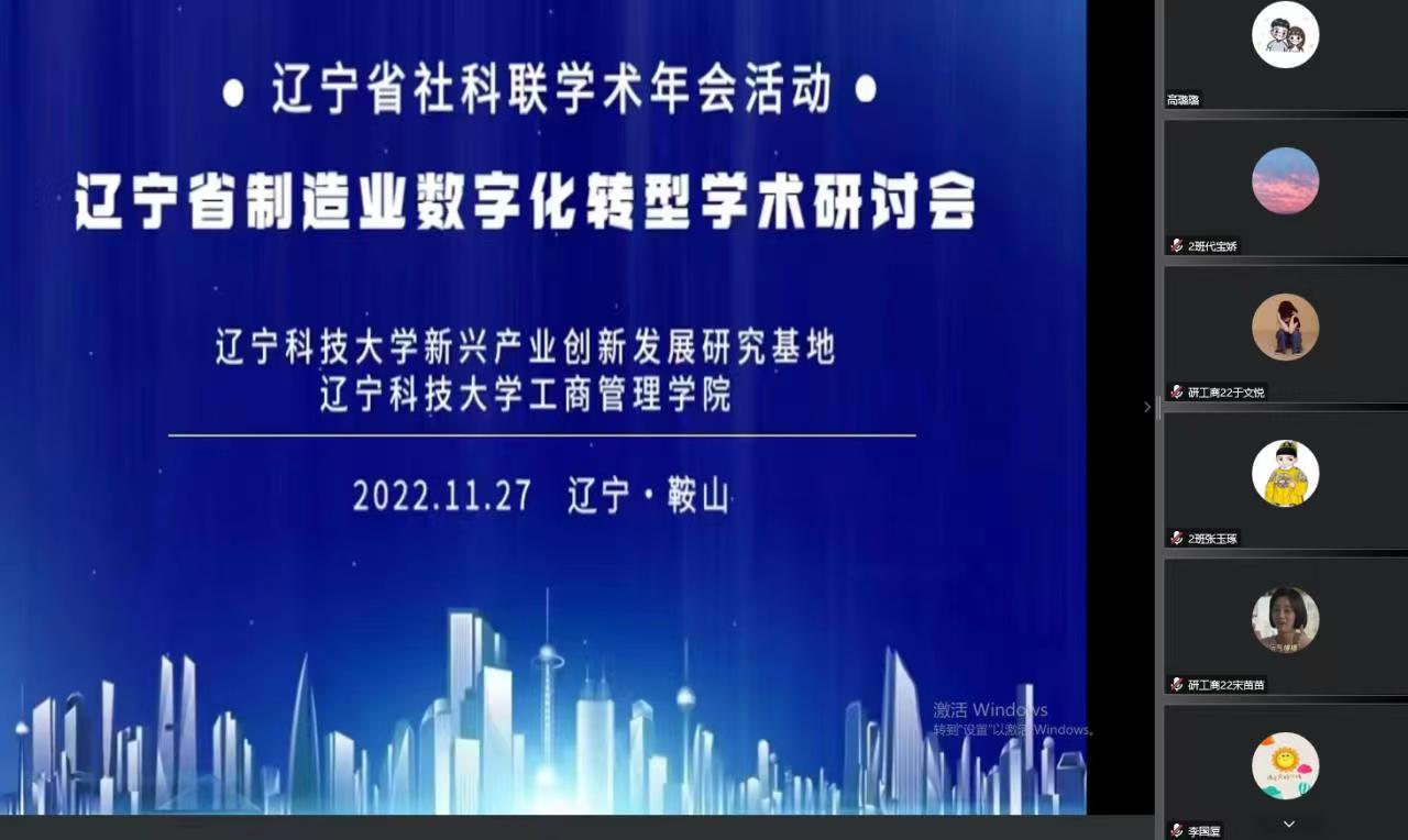 11月27日,工商管理学院通过腾讯会议举办“辽宁省制造业数字化转型”学术研讨会。此次研讨会依托乐动在线-乐动(中国)新兴产业创新发展研究基地,聚焦数字化转型,深入探讨我省制造业转型发展的新机遇和新路径。哈尔滨工程大学郭韬教授、沈阳工业大学王海军教授以及乐动在线-乐动(中国)李天柱教授进行了学术报告。沈阳工业大学、辽宁工业大学以及我校的相关老师、研究生参加了此次研讨会。