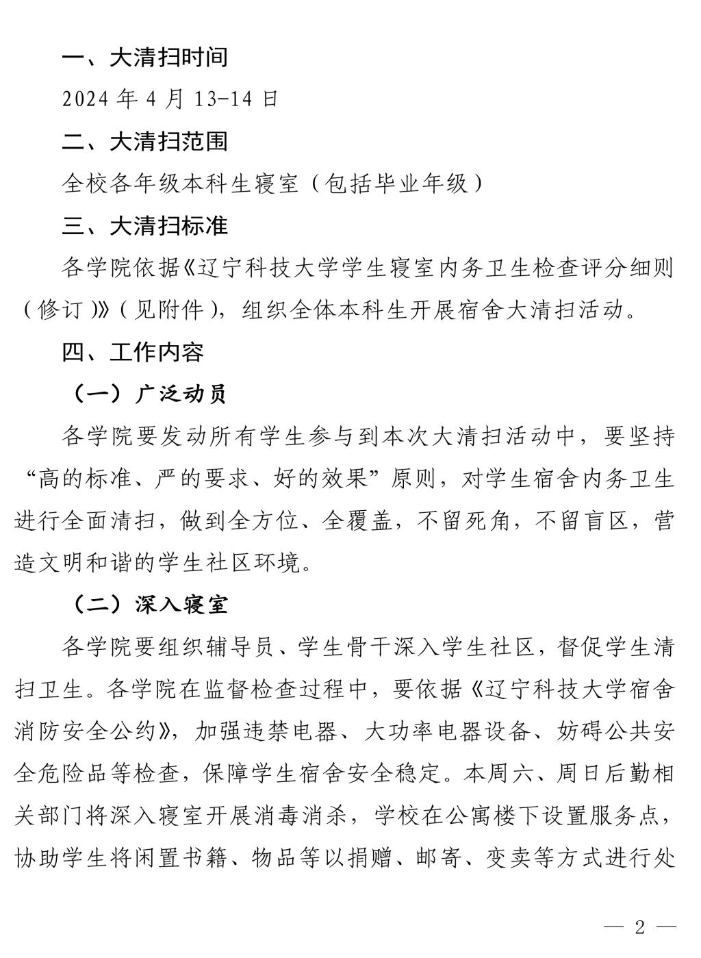 关于开展“培育好习惯 寝室焕新颜”学生宿舍大清扫活动的通知