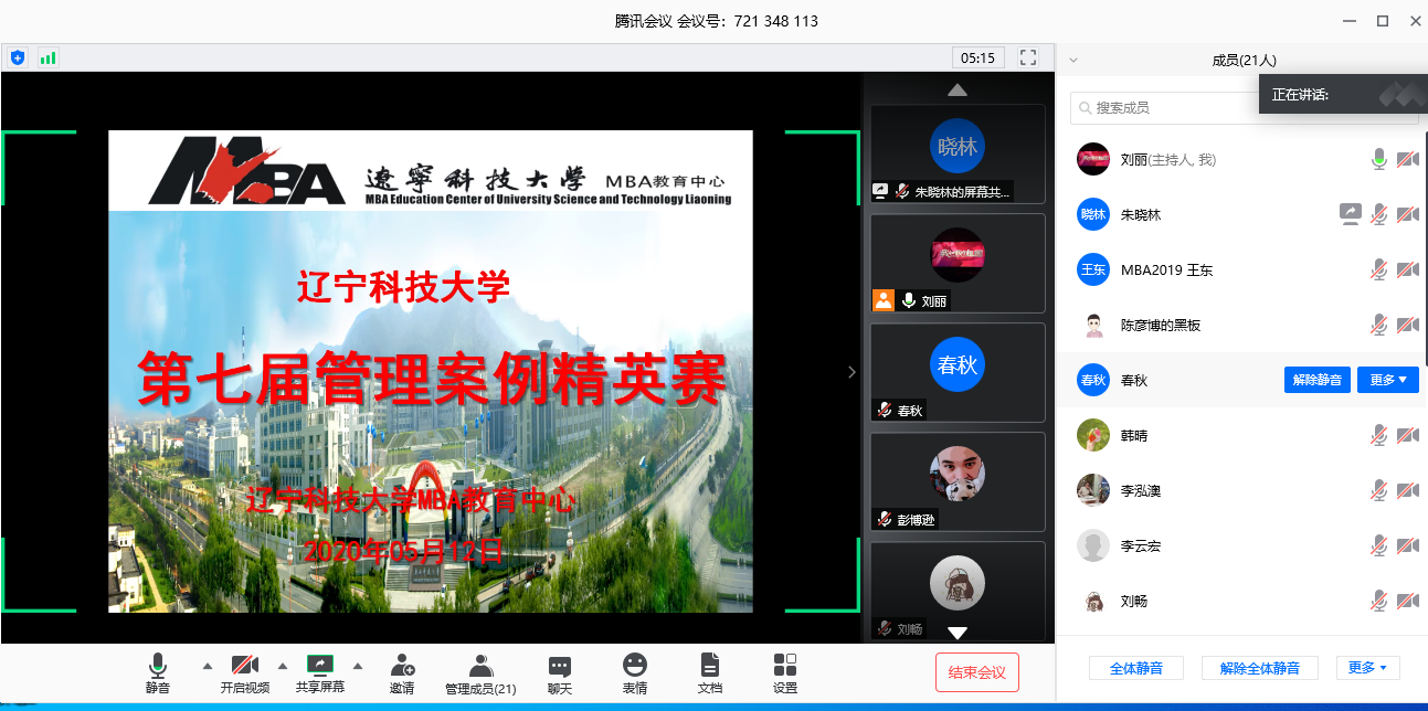 2020年5月9日晚,乐动在线-乐动(中国)MBA教育中心第七届管理案例精英赛成功举行。2019级全体参加了此次比赛。MBA教育中心副主任朱晓林教授,校外导师邵岩、吕衍国,管理综合案例课程任课老师李云宏、刘丽担任此次比赛评委。