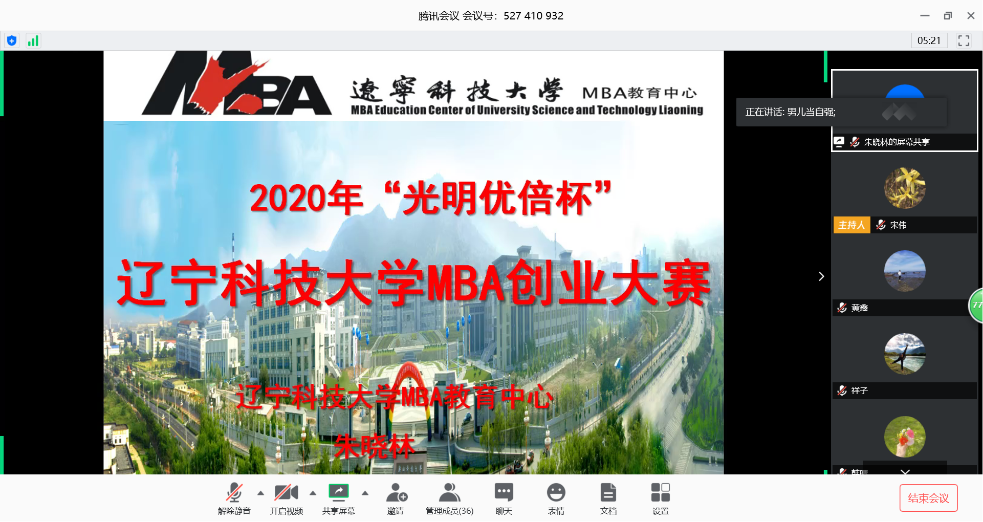本次大赛共有2018、2019级的12支队伍参加,分为创业计划书评审和线上答辩两个环节。MBA教育中心邀请辽宁省知名创业咨询专家、企业董事长、公司创始人、营销总监以及学院教授共同组成答辩委员会,组织参赛队伍进行了线上答辩。