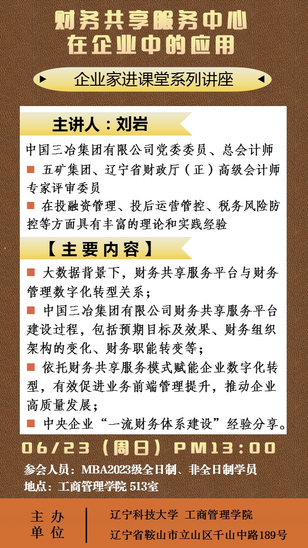 MBA企业家进课堂系列讲座预告