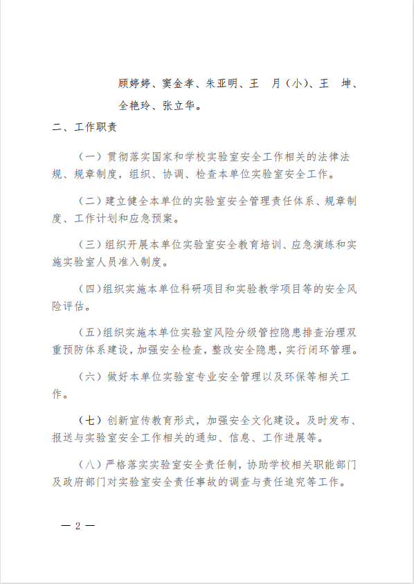 关于调整化学工程学院实验室安全工作领导小组成员的通知