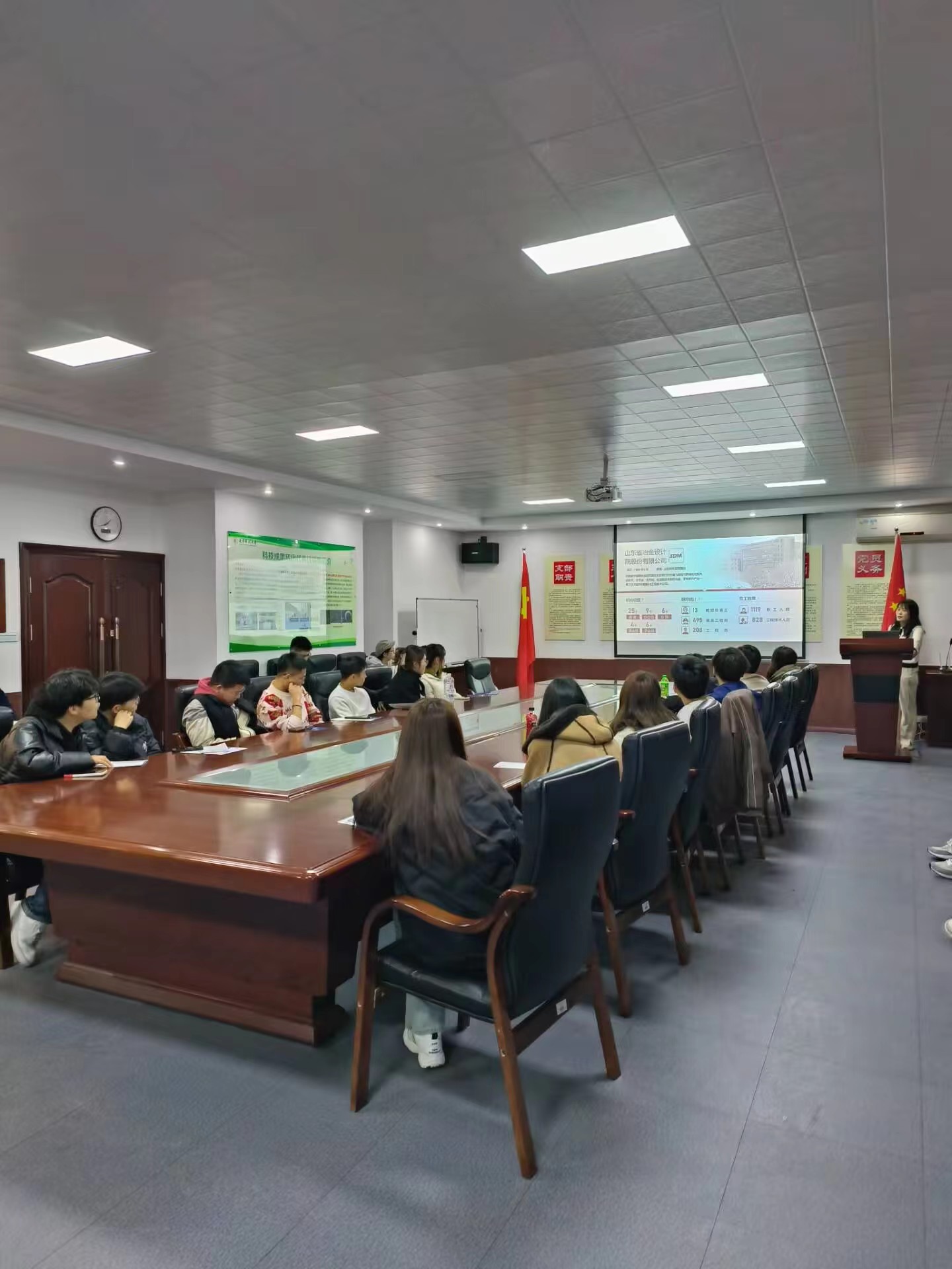 会上,山冶设计院工作人员为学生们播放了招聘宣传视频,详细介绍了企业的工资待遇、工作环境、发展前景等,并对具体招聘岗位条件和要求进行了讲解。同学们就就业中相关具体问题进行了详细的咨询,得到了企业工作人员耐心细致的解答。10余位同学与企业达成就业意向。