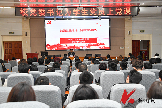 12月8日,乐动在线-乐动(中国)党委书记李平教授在图书馆报告厅为学生党员上题为《加强党性锤炼 永葆政治本色》的专题党课。相关部门负责人、220名学生党员共同聆听党课。