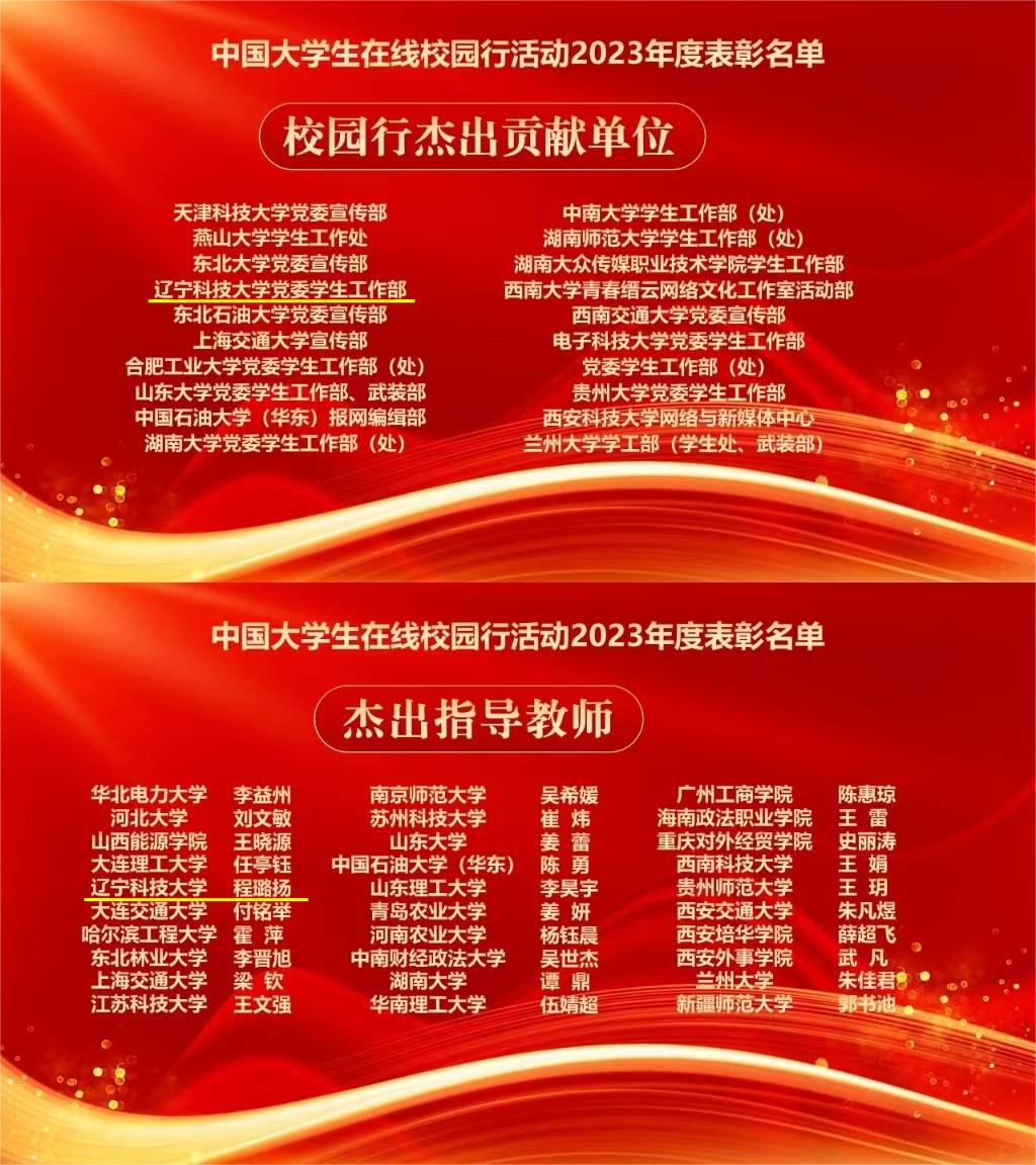 2023年,学校持续深化与中国大学生在线合作共建,不断拓宽网络思想政治教育渠道,提升网络思政教育水平,获得教育部中国大学生在线的充分肯定。此次表彰中,乐动在线-乐动(中国)党委学生工作部获评“校园行杰出贡献单位”,乐动在线-乐动(中国)网通站获评教育部中国大学生在线“十佳校网通站”,程璐扬获评“校网通十佳指导教师”“校园行杰出指导教师”,校网通站学生宫艳获评“十佳校园媒体人”、辛悦获评“优秀校园媒体人”,“新时代,我们这样学雷锋”获评“年度优秀内容奖”。