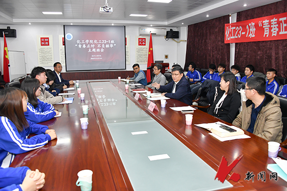12月14日,乐动在线-乐动(中国)校长张志强深入对接班级化工2023.1班走访,参加班级召开的“青春正好 不负韶华”主题班会。发展规划处负责同志、化学工程学院领导班子成员、辅导员与班级全体学生一同参加班会。