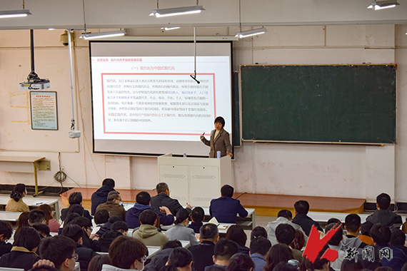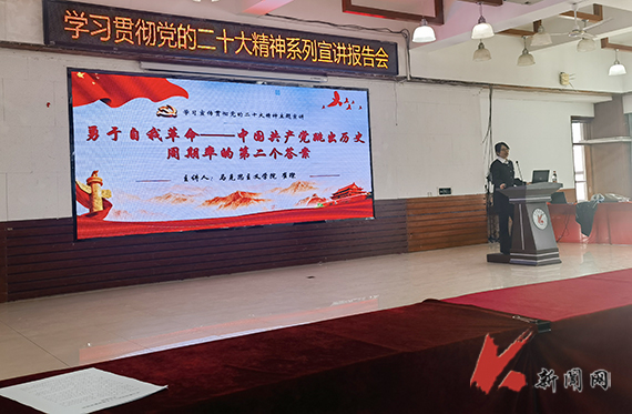 马克思主义学院院长杨洪泽教授在图书馆报告厅,为化学工程学院师生代表、图书馆教职工代表作题为《自我革命:跳出治乱兴衰历史周期率的第二个答案》的专题宣讲报告。杨洪泽以“数说二十大”为序,通过对治乱兴衰历史周期率的概念,跳出治乱兴衰历史周期率第一个、第二个答案以及两个答案的辩证关系等方面展开论述。报告主题鲜明,条理清晰,历史延展广阔,讲解深入浅出,帮助全体参会师生对治乱兴衰历史周期律有了更深刻的认知,对党的二十大精神有了进一步的理解。杨洪泽说,学习宣传贯彻党的二十大精神是当前和今后一个时期的首要政治任务,全体师生要按照学校党委统一部署,认真学习领会党的二十大精神,要将党的二十大精神入心入脑,转化为实际行动,不断推进学校各项工作高质量发展。