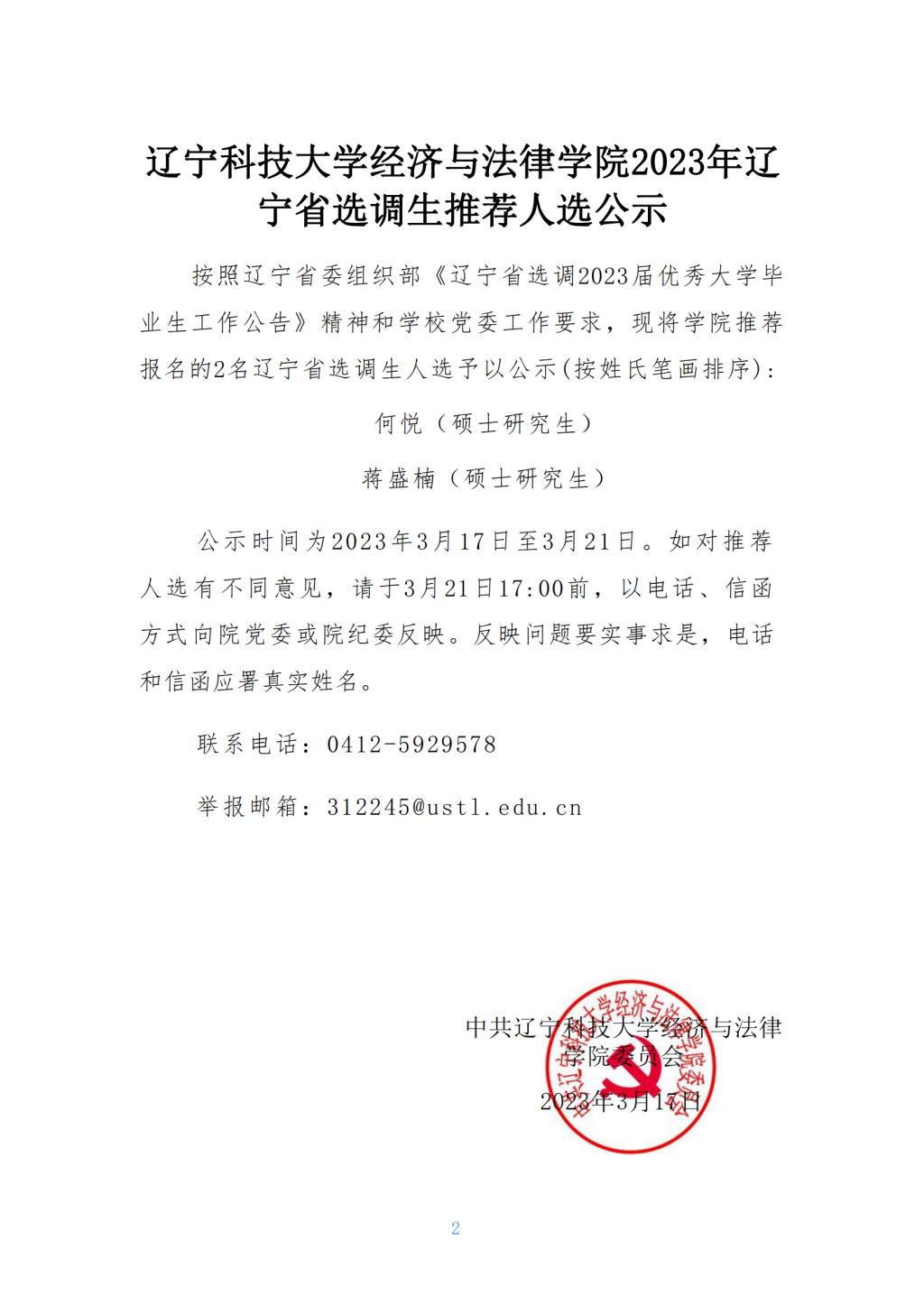 乐动在线-乐动(中国)经法学院2023年辽宁省选调生推荐人选公示