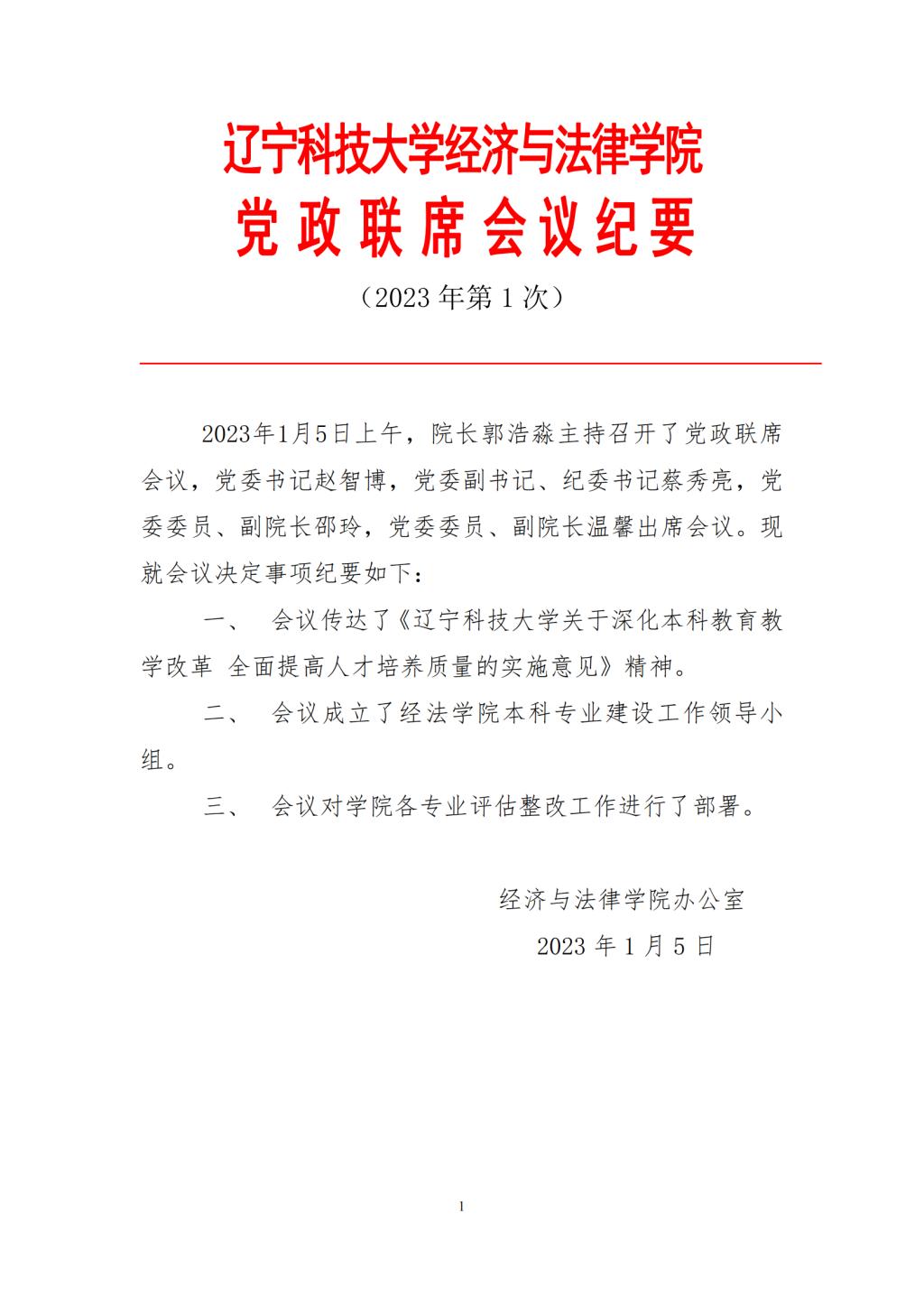 乐动在线-乐动(中国)经济与法律学院党政联席会会议纪要(2023年第1次)