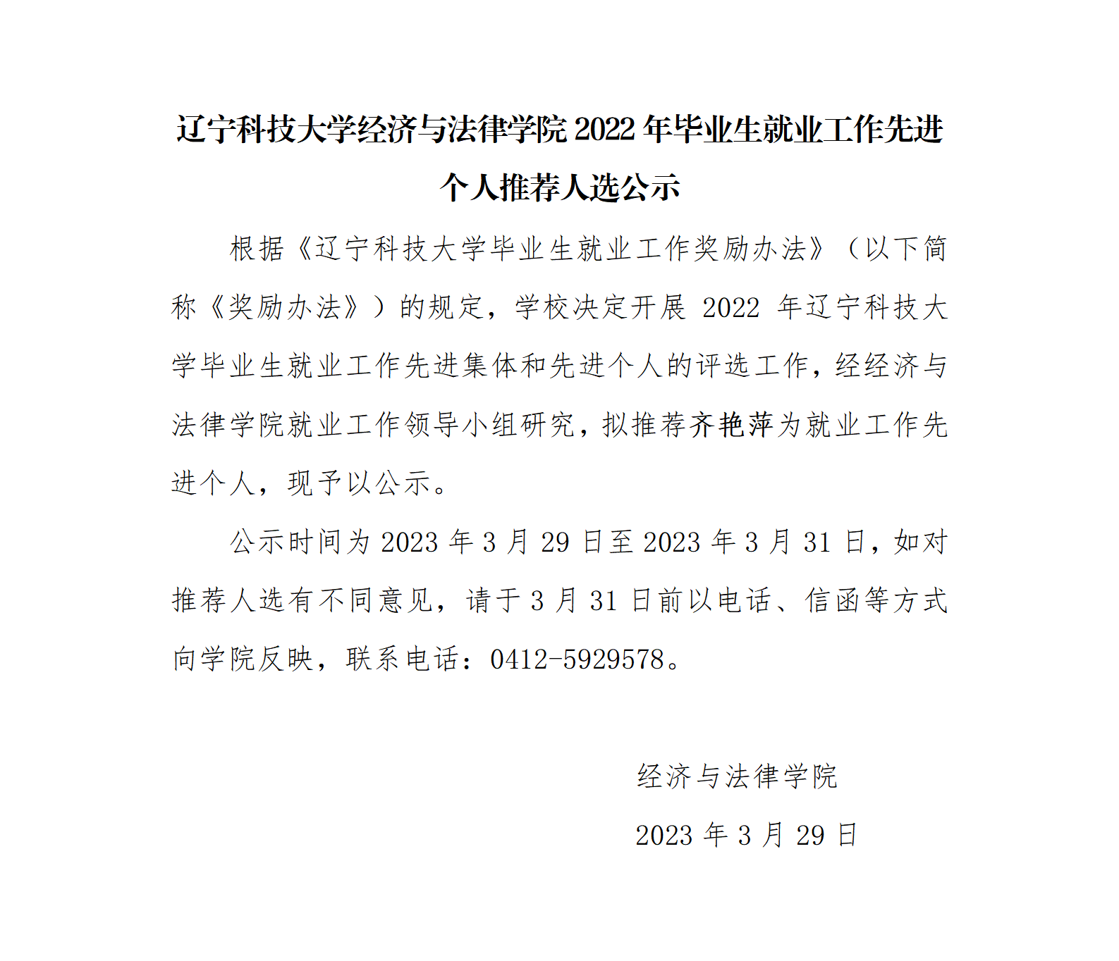 乐动在线-乐动(中国)经济与法律学院2022年毕业生就业工作先进个人推荐人选公示