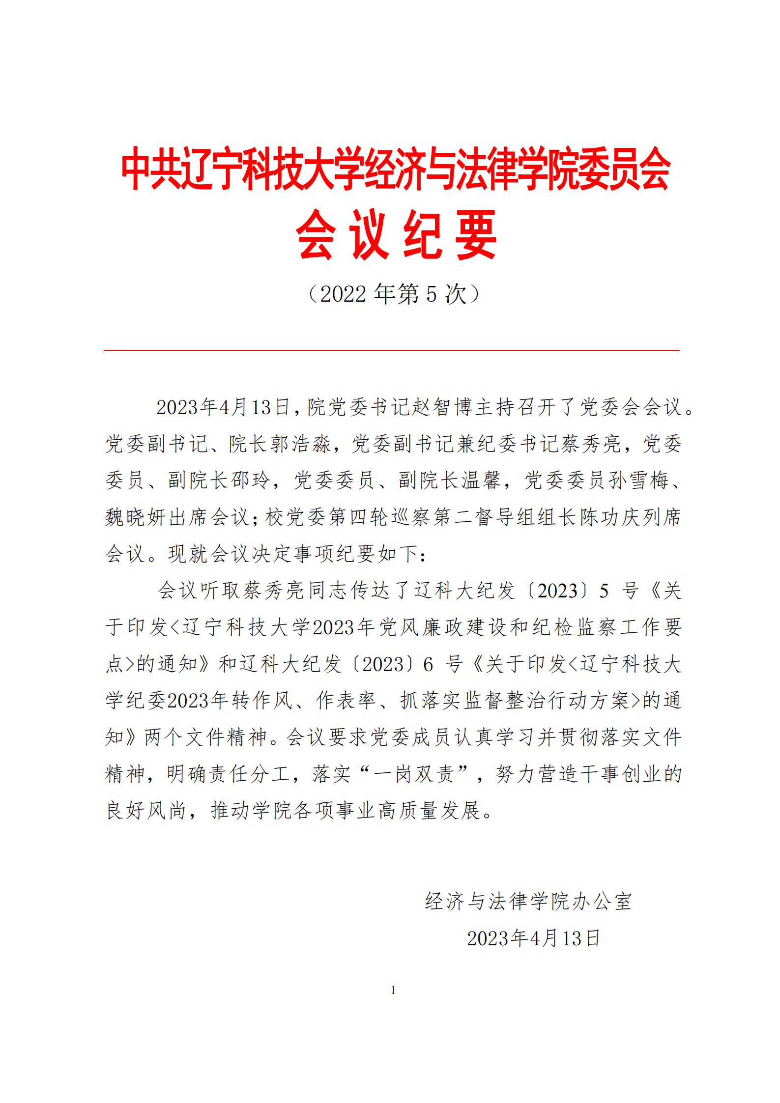 中共乐动在线-乐动(中国)经济与法律学院委员会会议纪要(2023年第5次)