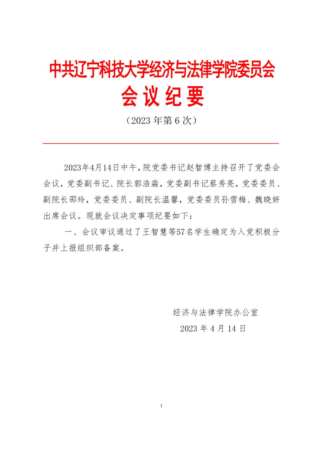 中共乐动在线-乐动(中国)经济与法律学院委员会会议纪要(2023年第6次)
