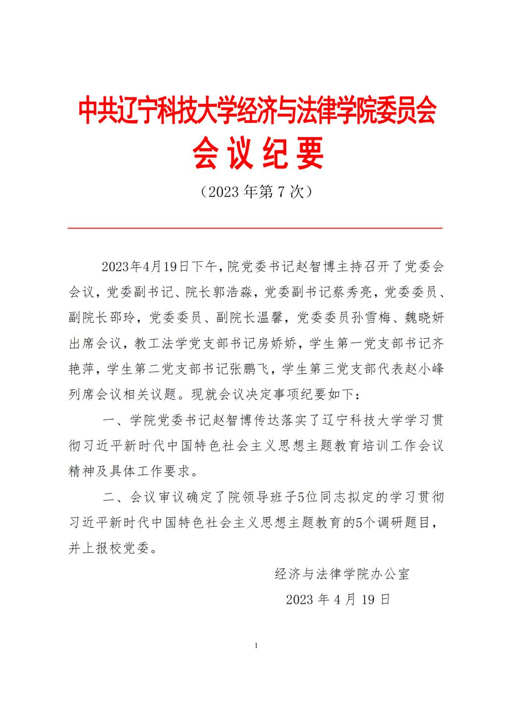 中共乐动在线-乐动(中国)经济与法律学院委员会会议纪要(2023年第7次)