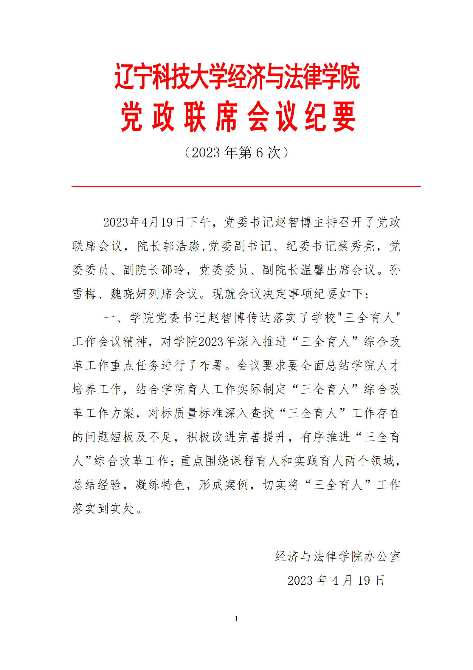 乐动在线-乐动(中国)经济与法律学院党政联席会会议纪要(2023年第6次)