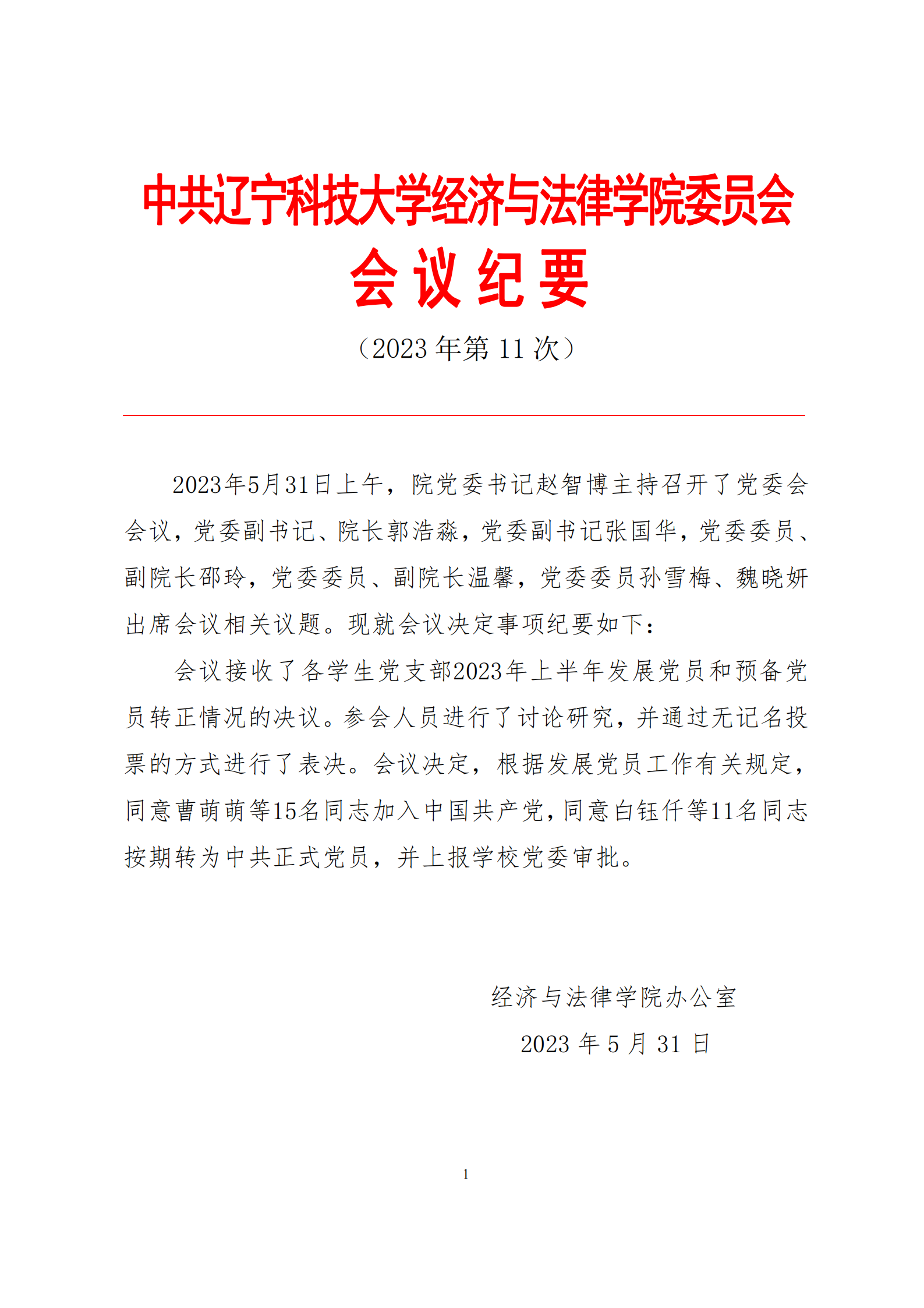 中共乐动在线-乐动(中国)经济与法律学院委员会会议纪要(2023年第11次)