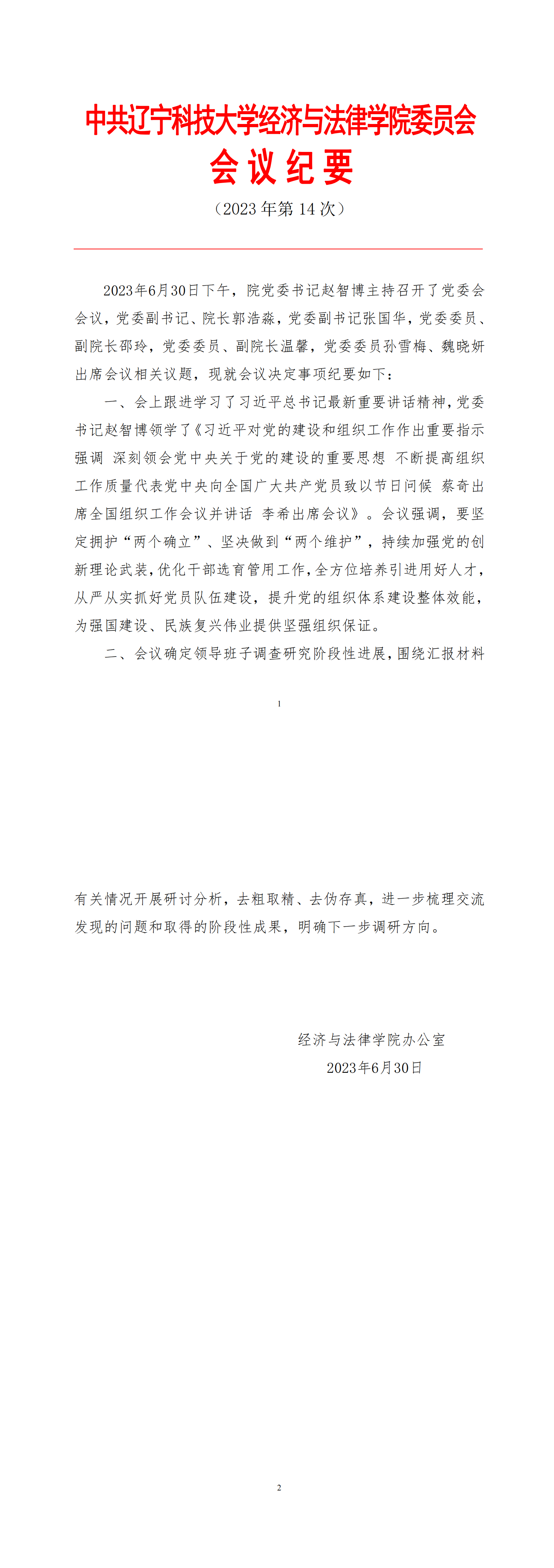 中共乐动在线-乐动(中国)经济与法律学院委员会会议纪要(2023年第14次)