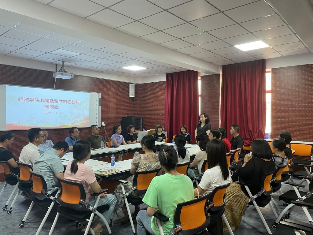 7月13日上午,经法学院于博识楼A407组织召开党外人士及留学归国教师座谈会,会议由学院党委成员、统战委员魏晓妍主持,学院领导班子、党外人士及留学归国教师共计20余人参加了会议。