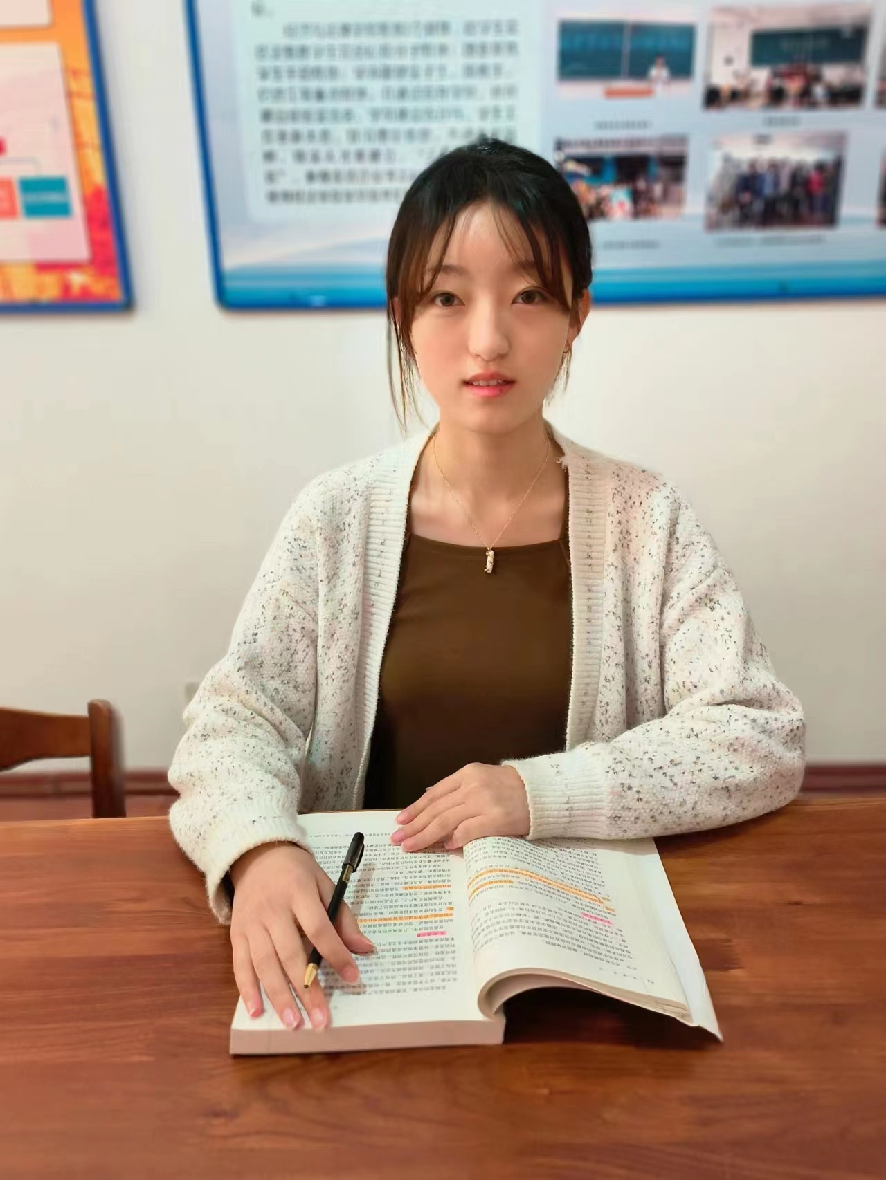 在思想上,她热爱祖国,热爱中国共产党。在大一时,她就主动递交了入党申请书,凭借自身努力以及老师和同学们的信任,于2023年5月发展成为中共预备党员。她不断提高自身思想觉悟,时刻以一名中国共产党党员的标准严格要求自己,争取最大限度地发挥模范带头作用。