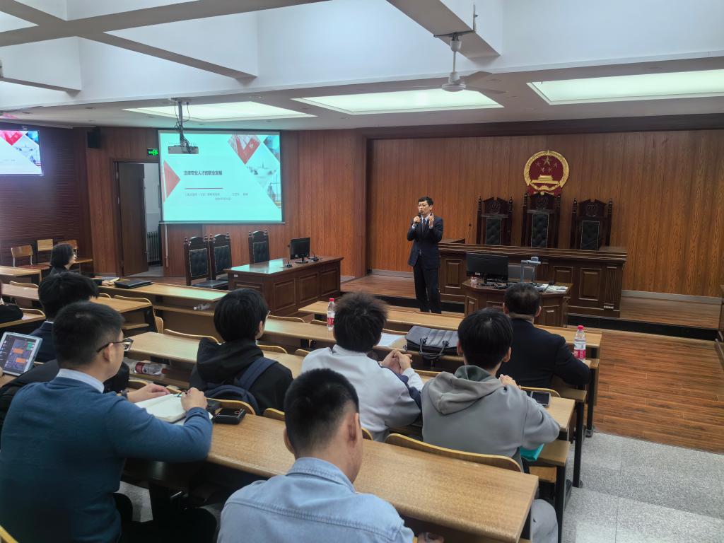 随后,王守军律师结合法律实践为大家分析了当前法律专业人才职业发展方向和建议,并送给同学们十六字寄语:“珍惜当下、努力储能、谋划发展、未来可期”。王俊强律师为与会同学做《工程建设领域的总承包模式》讲座。讲座内容主要包括总承包模式的概念特征、规范及国内发展、主要区别、实务中的主要问题四个方面,为同学们详细讲述了工程建设领域的相关问题及论文选题等。