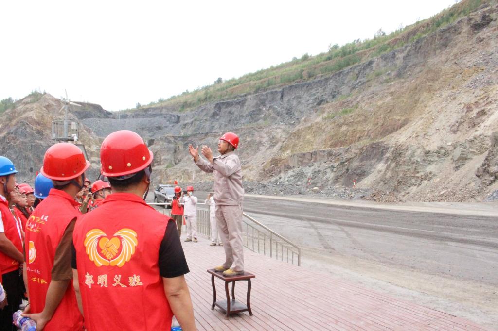 走在郭明义老师已经走了40多年的崎岖颠簸的矿山路上,大家头戴蓝色安全帽,身穿红马甲,在艰苦的环境中感受敬业的实质,在亲切的氛围里体悟精神的力量。尽管道路崎岖,泥土飞溅,但师生们的热情丝毫不减,踏着坚毅的步伐奋勇向前。在活动过程中,郭明义老师结合主题教育为全体师生讲党课,大家认真聆听,再一次深刻领悟了共产党人的责任与担当。在郭明义老师带领下,大家以饱满的热情和昂扬的姿态齐声高唱《学习雷锋好榜样》和《没有共产党就没有新中国》,展现了经法学子良好的精神风貌。