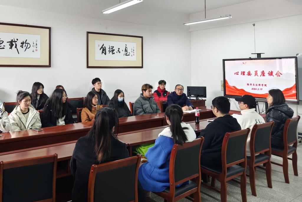 为保障学生心理健康,充分发挥心理委员在学院心理健康教育工作中的作用,3月19日,经法学院于博识楼A313会议室召开心理委员座谈会。学院党委副书记张国华、学办主任齐艳萍以及2021-2023级共计20名心理委员参加了此次座谈会。