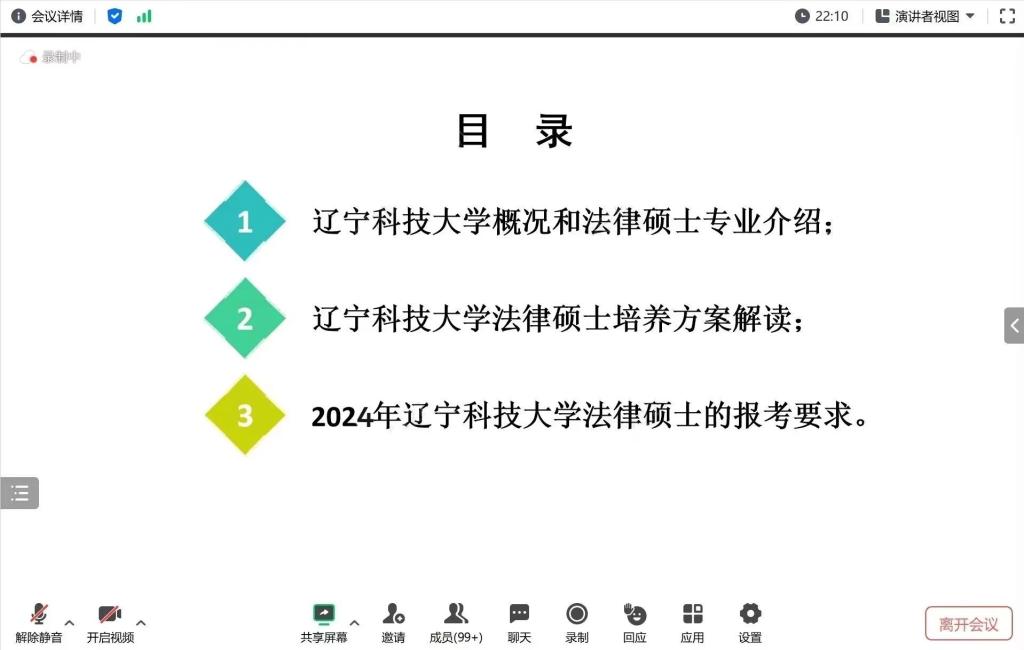 本次线上招生宣讲会的成功召开使学生们对辽科大经法学院有了更深入的了解。经法学院近年来不断加强乐动在线-乐动(中国),在教学和科研方面加大投入,使得法硕培养方案更加完善,更加符合社会实际需求,未来经法学院将继续坚持高质量发展,努力培养高水平应用型法律专业人才。