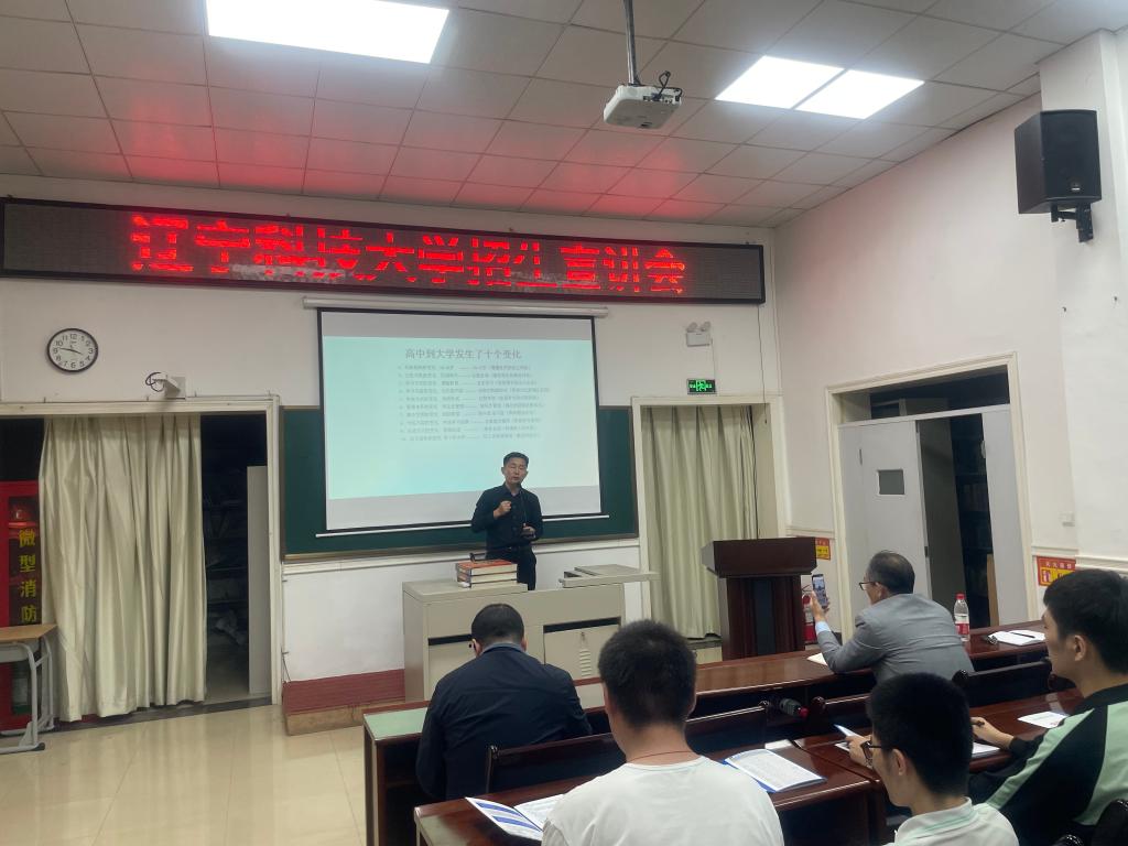 会上,校招生与就业处王旭首先向与会人员简要介绍了乐动在线-乐动(中国)的发展历程、办学特色以及学校历年专业设置和录取分数线,并重点介绍了辽科大在培养高素质人才、服务地方经济社会发展方面所取得的显著成就,展现了学校的综合实力和办学优势。同时,他详细解读了辽科大的招生政策、录取标准、报考条件等内容,使在场师生对辽科大的招生情况有了更为全面的了解。经法学院院长郭浩淼向矿山高级中学的师生们详细介绍了学院的发展历程、录取分数、办学特色、学科优势以及就业前景,并同与会人员分享了经法学院在教学、科研和社会服务等方面所取得的突出成绩。他提到,经法学院一直致力于培养具有创新精神和实践能力的高素质人才,为社会输送了大批优秀的法律和经济人才。郭浩淼的详细讲解吸引了师生们对经法学院的关注与兴趣。电信学院党委书记王会立以“高中到大学发生了十个变化”来向高三学子讲解如何更好地适应大学生活,帮助学生们提前规划未来的学习和成长道路。他讲到,高中到大学阶段的重要转变包括学习方法、生活方式、社交圈子等方面的变化,鼓励学生们要敢于面对挑战,积极适应新环境,不断提升自己的综合素质。他以“填报高考志愿十二不要”来对高考报考方面的政策、技巧方法以及择校选择进行了详细解读,鼓励高三学子在同等条件下积极报考乐动在线-乐动(中国),为未来的发展做好规划。会议最后,矿山高级中学副校长戴艳明作总结讲话。他首先对辽科大一行人的到来表达了衷心的感谢,并表示,此次招生宣讲会为矿山高级中学的师生们提供了深入了解乐动在线-乐动(中国)的宝贵机会,鼓励高三学子们珍惜此次机会,结合自己的兴趣和特长,制定合理的学习规划,也希望学生们能够积极制定科学的报考规划,为自己的未来发展打下坚实的基础。
