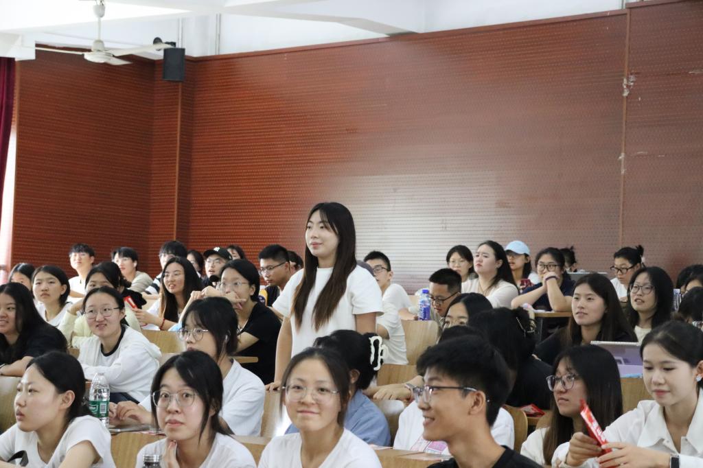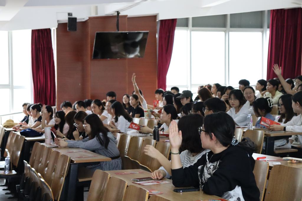 互动环节中,徐子茹女士围绕宣讲内容提出专业问题,同学们踊跃举手、积极抢答,现场氛围热烈活跃,进一步加深了对工行招聘需求与职业要求的理解。