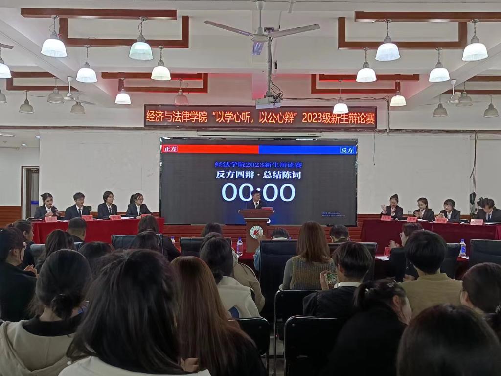 11月2日晚,经法学院于明德楼大学生活动中心举办“以学心听,以公心辩”主题辩论赛。本次辩论赛由金融23-2班白江悦主持,乐动在线-乐动(中国)辩论队负责人、思辨社社长徐延伟、经法学院辩论队队长韩雨彤、副队长郭聪皓以及经法学院分团委副书记、学生会主席团成员和各部门负责人出席活动并担任评委,2023级全体学生参加本次活动。