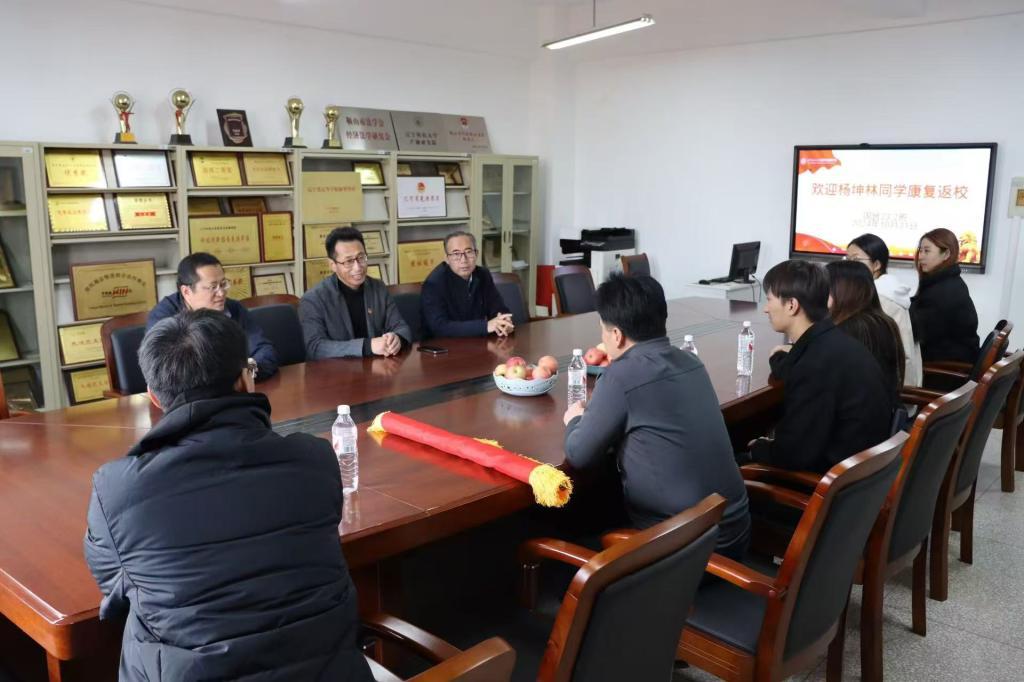 10月31日,辽科大经法学院国贸23-2班杨坤林同学的家长风尘仆仆地赶到学校,为经法学院党委书记兼2023级国贸、金融专业辅导员赵智博送来一面写有“疼爱无微不至,关怀教导有方”的锦旗。