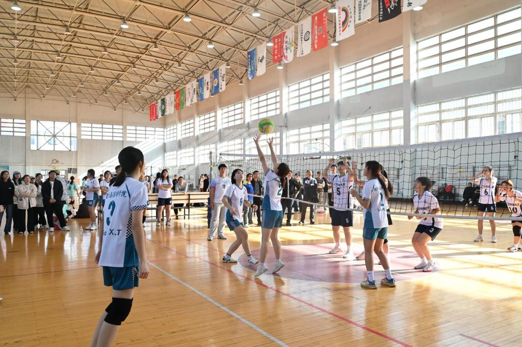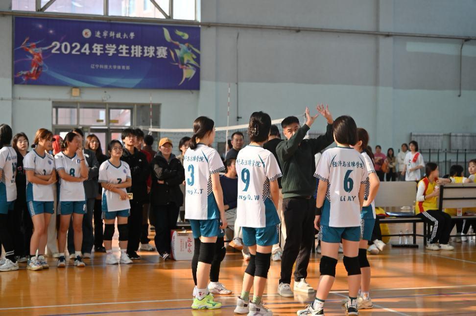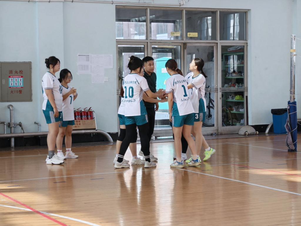比赛过程中,经法学院团委副书记张鹏飞亲自到场为经法女排进行指导。他凭借着丰富的排球知识和经验,在每一局的间隙,迅速召集队员围拢,分析对手的进攻特点和防守漏洞,为队员们制定精准有效的应对策略。同时,学院团委、学生会全体成员到场为经法女排加油助威,充满激情的声音给予队员们无限的动力,让她们更加坚定了拼搏到底的决心。