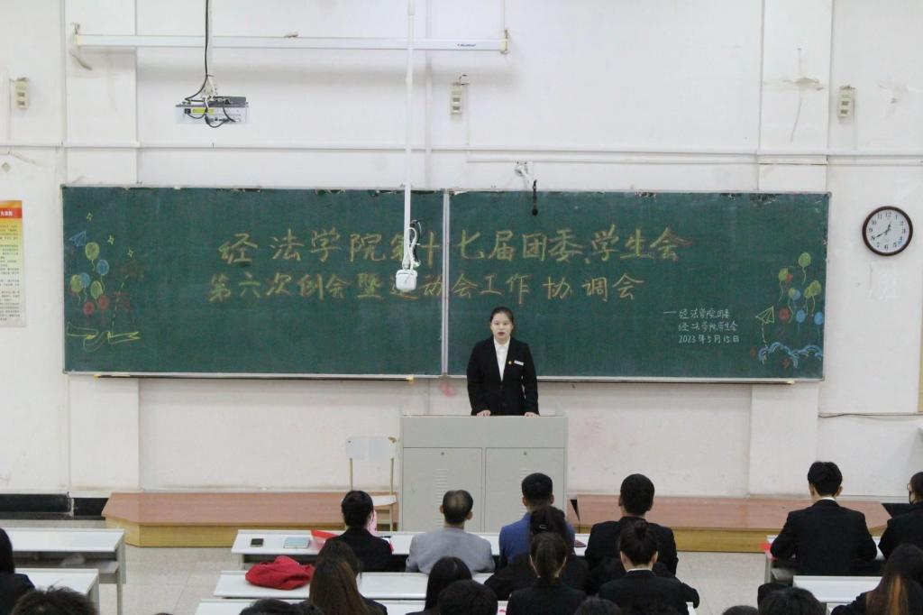 5月15日,经法学院于博学楼A301召开第十七届团委、学生会第六次例会暨运动会工作协调会,本次会议由经法学院团委副书记张鹏飞主持,学院党委副书记张国华、全体学生骨干以及全体运动员出席了本次会议。