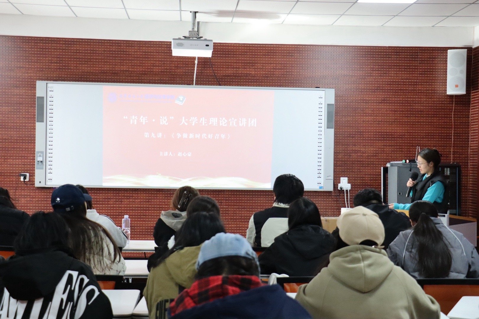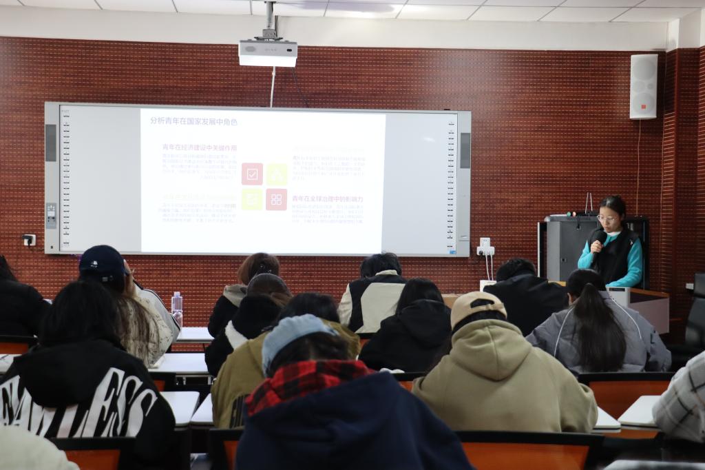 近日,经法学院于博识楼A407开展“青年·说”大学生理论宣讲,此次宣讲由学院“青年·说”大学生理论宣讲团成员、学生会执行主席兼办公室负责人赵心豪担任主讲人,经法学院30余名团员青年参加了宣讲会。