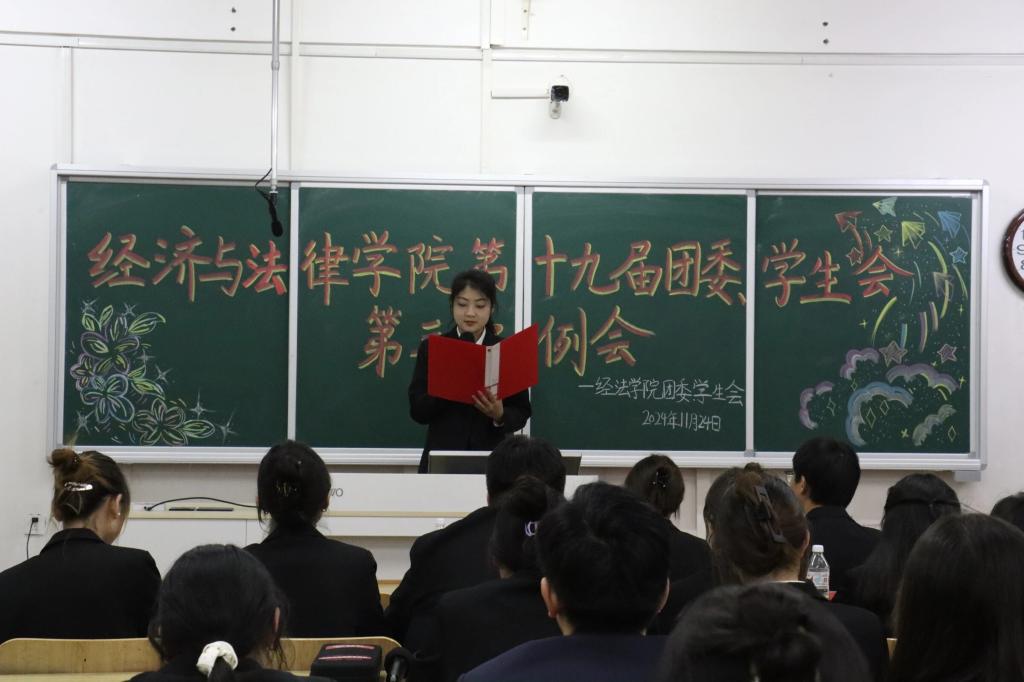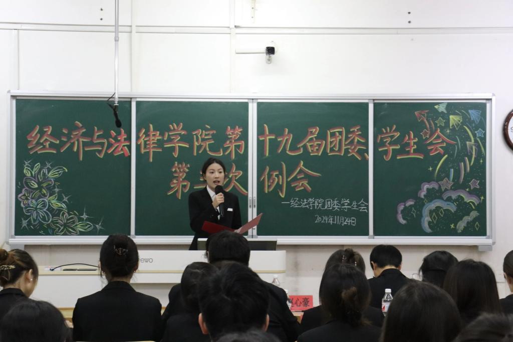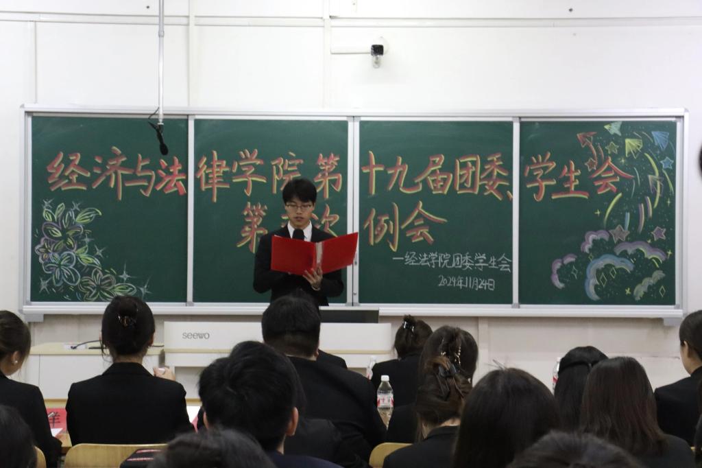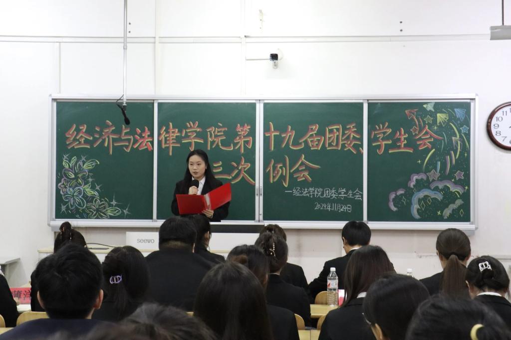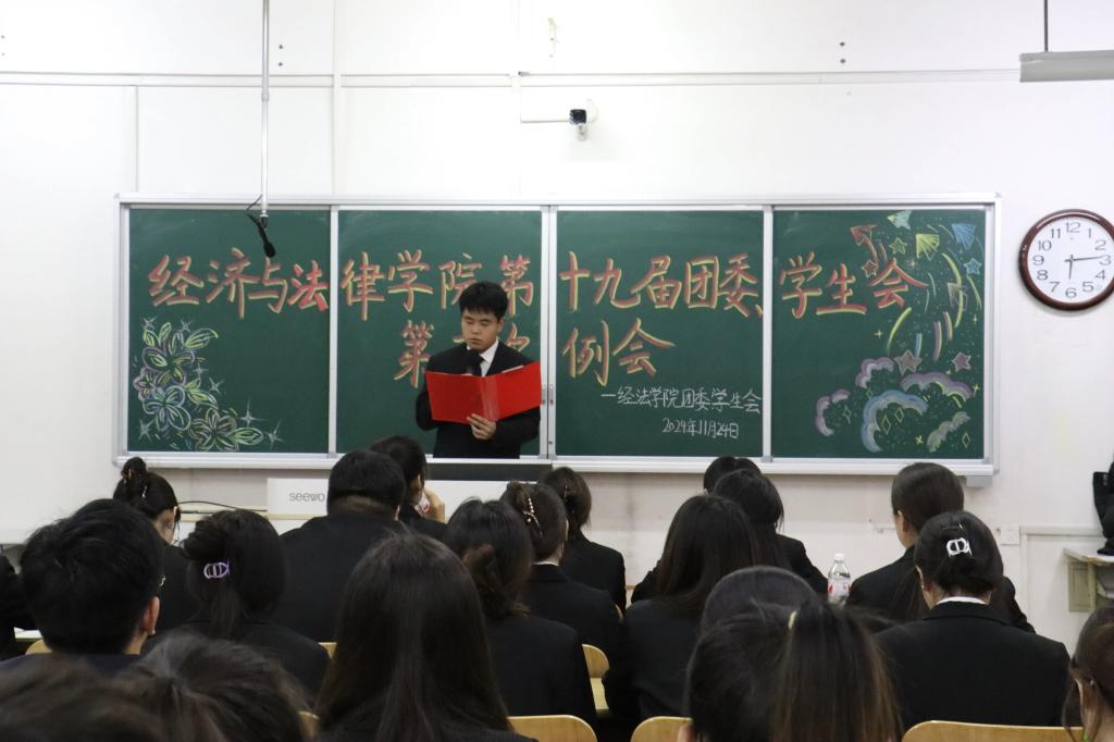11月24日,经法学院于博学楼c413召开第十九届团委、学生会第三次例会。会议由学院学生会执行主席兼办公室负责人赵心豪主持,第十九届团委、学生会全体团学骨干参加了本次会议。