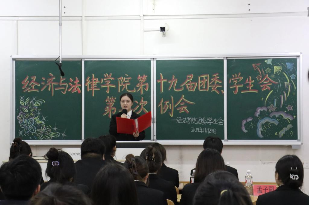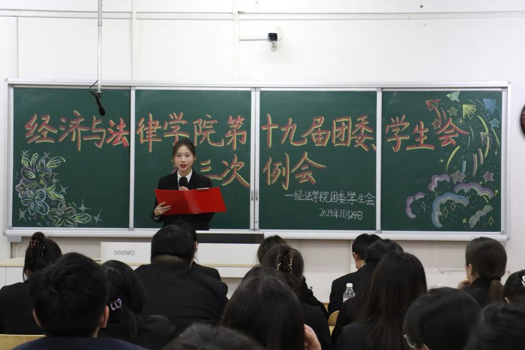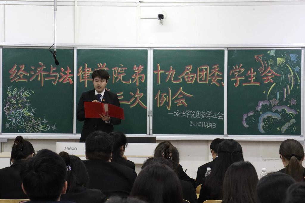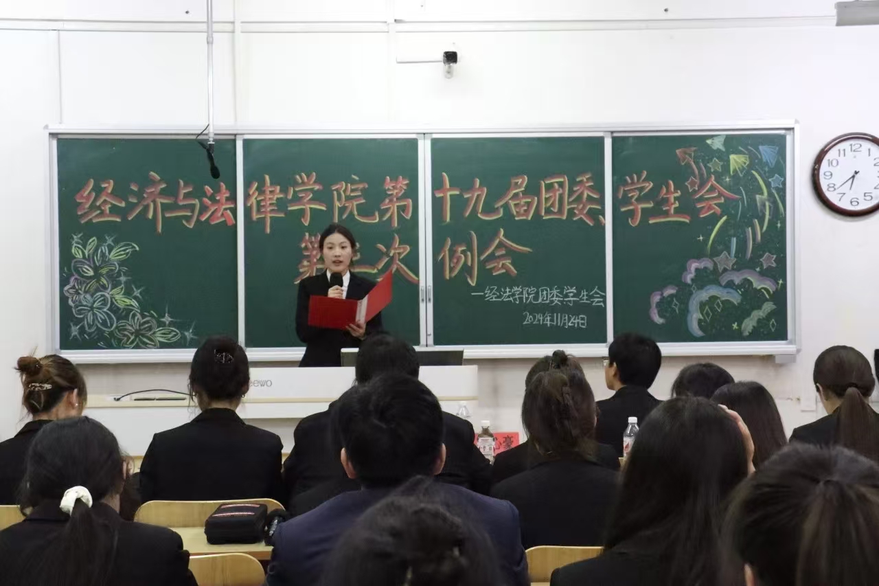 11月24日,经法学院于博学楼c413召开第十九届团委、学生会第三次例会。会议由学院学生会执行主席兼办公室负责人赵心豪主持,第十九届团委、学生会全体团学骨干参加了本次会议。