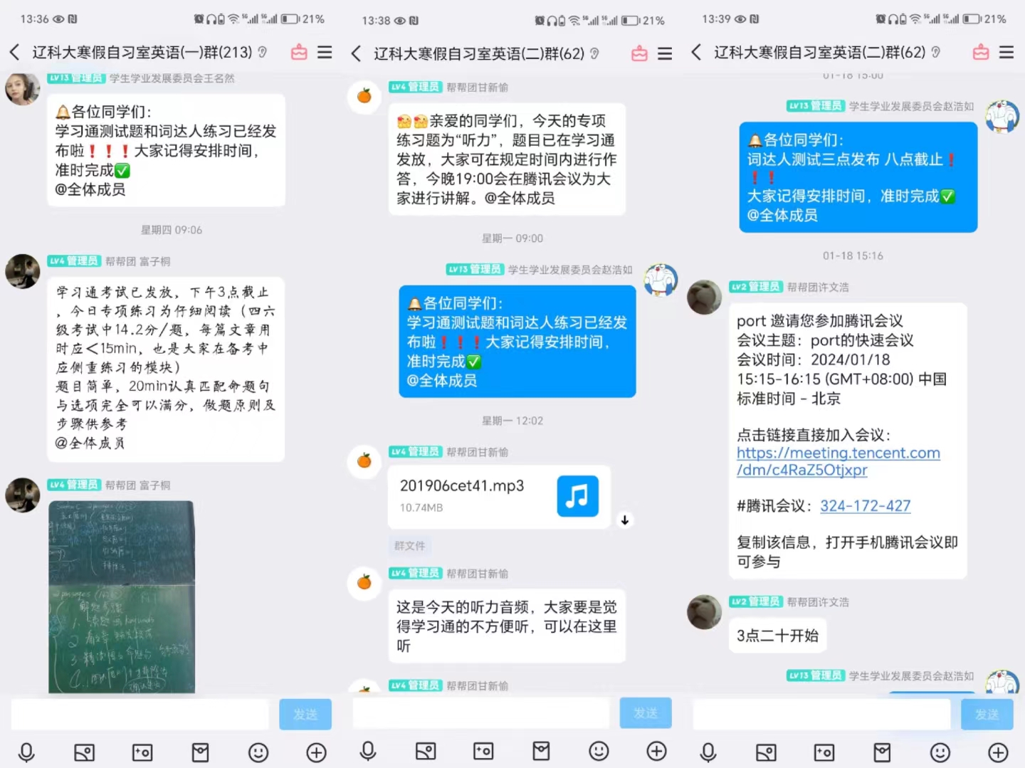 寒假自习室不仅给学员们带来了帮助,也让教员们得到了成长。高数教员赵吉喆:“在为期三周的寒假自习室生活中,我不仅能够跟大家分享自己的学习经验与心得,而且能够锻炼自身的能力。通过在屏幕前授课,我能明显地感觉到自己的语言表达能力和逻辑思维能力有所提升,而且变得更加自信和从容。”英语教员白西贝:“我特别感谢学校开设的寒假自习室活动,让我和更多的辽科大同学有机会一起学习,共同进步。作为一名帮帮团英语教员,在此次活动中,我尽己所能规划好课程,帮助同学们更好地学习英语、提升英语水平,在讲授知识的同时发现自身的不足,并加以完善和提高。”高数教员周建宇:“倡导朋辈互助的自习室活动让我认识到终身学习的重要性。作为一名高数教员,通过不断地反思和学习,我将持续不断地改进自己的教学方法和内容,以适应广大同学不断变化的学习需求,更好地帮助同学们。”